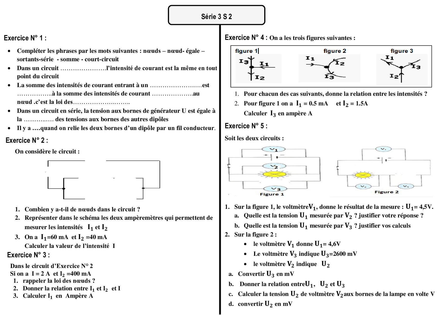 La loi des noeuds - La loi d'additivité des tensions - Exercices non corrigés 3