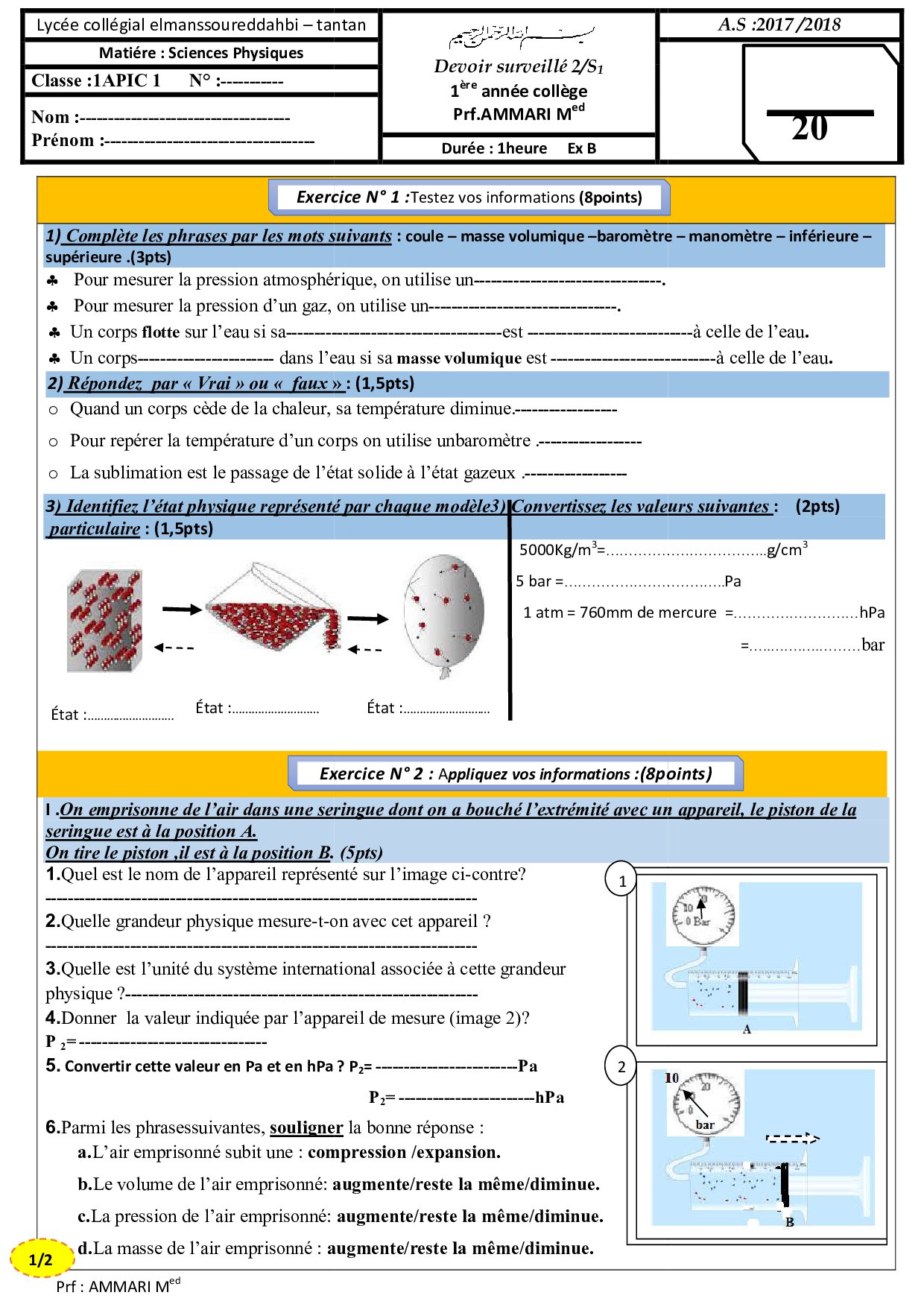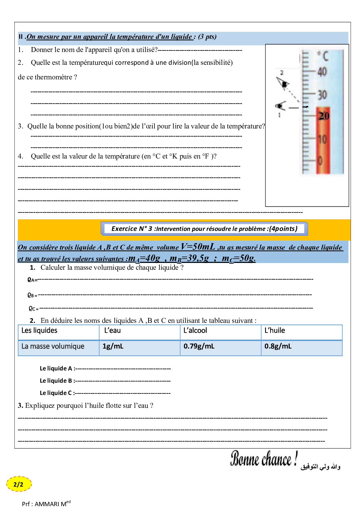 Devoir 2 Modèle 4 - Physique Chimie 1AC Semestre 1
