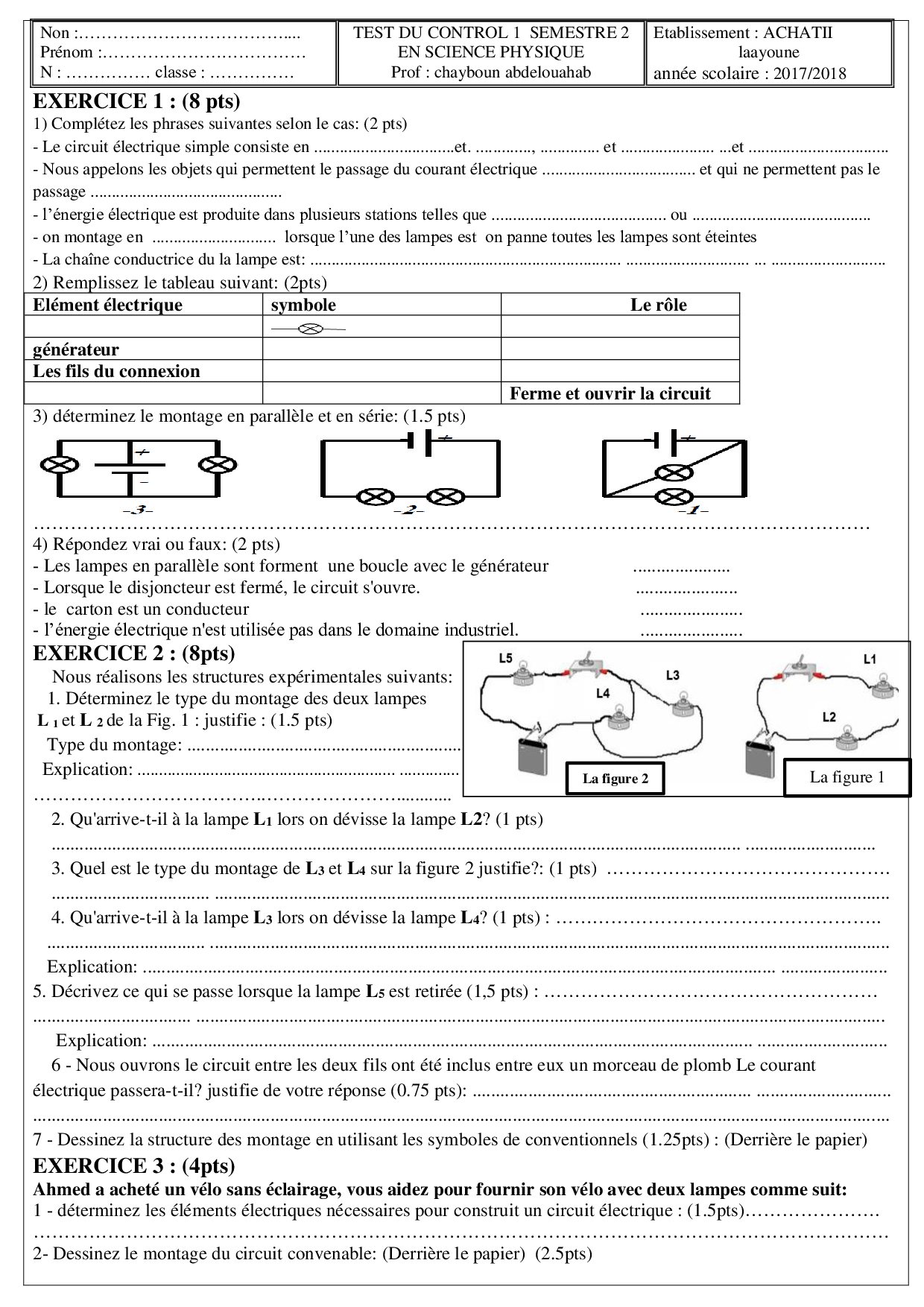 Devoir 1 Modèle 5 - Physique Chimie 1AC Semestre 2