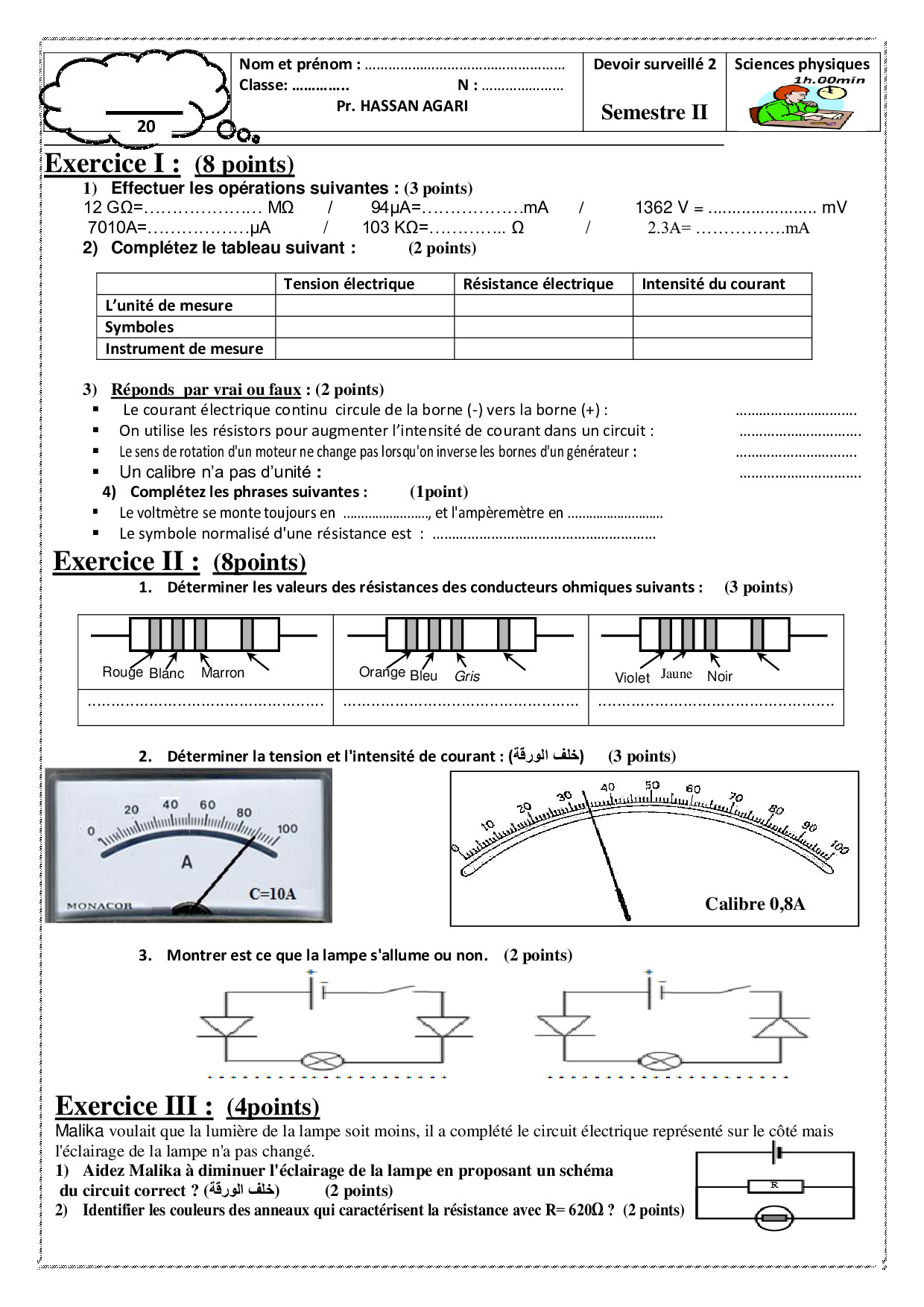 Devoir 2 Modèle 2 - Physique Chimie 1AC Semestre 2