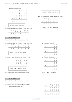 Poser des opérations (sauf division) - Corrigé série d'exercices 2