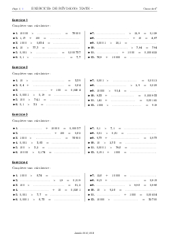 Produit, quotient par 10, 100, 1000 - Série d'exercices 2