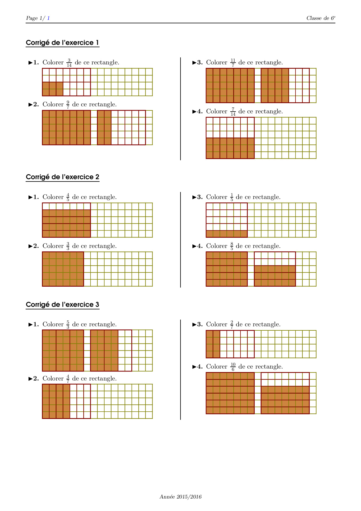 Fractions et partage - Corrigé série d'exercices 4