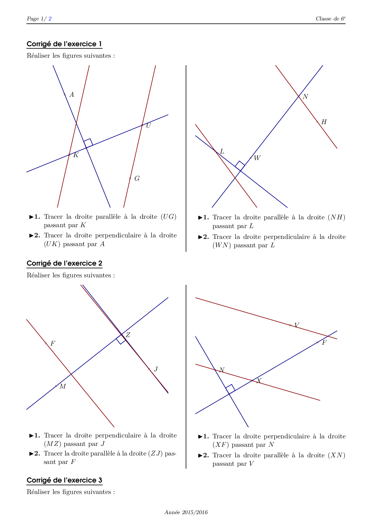 Droites perpendiculaires et parallèles - Corrigé série d'exercices 3