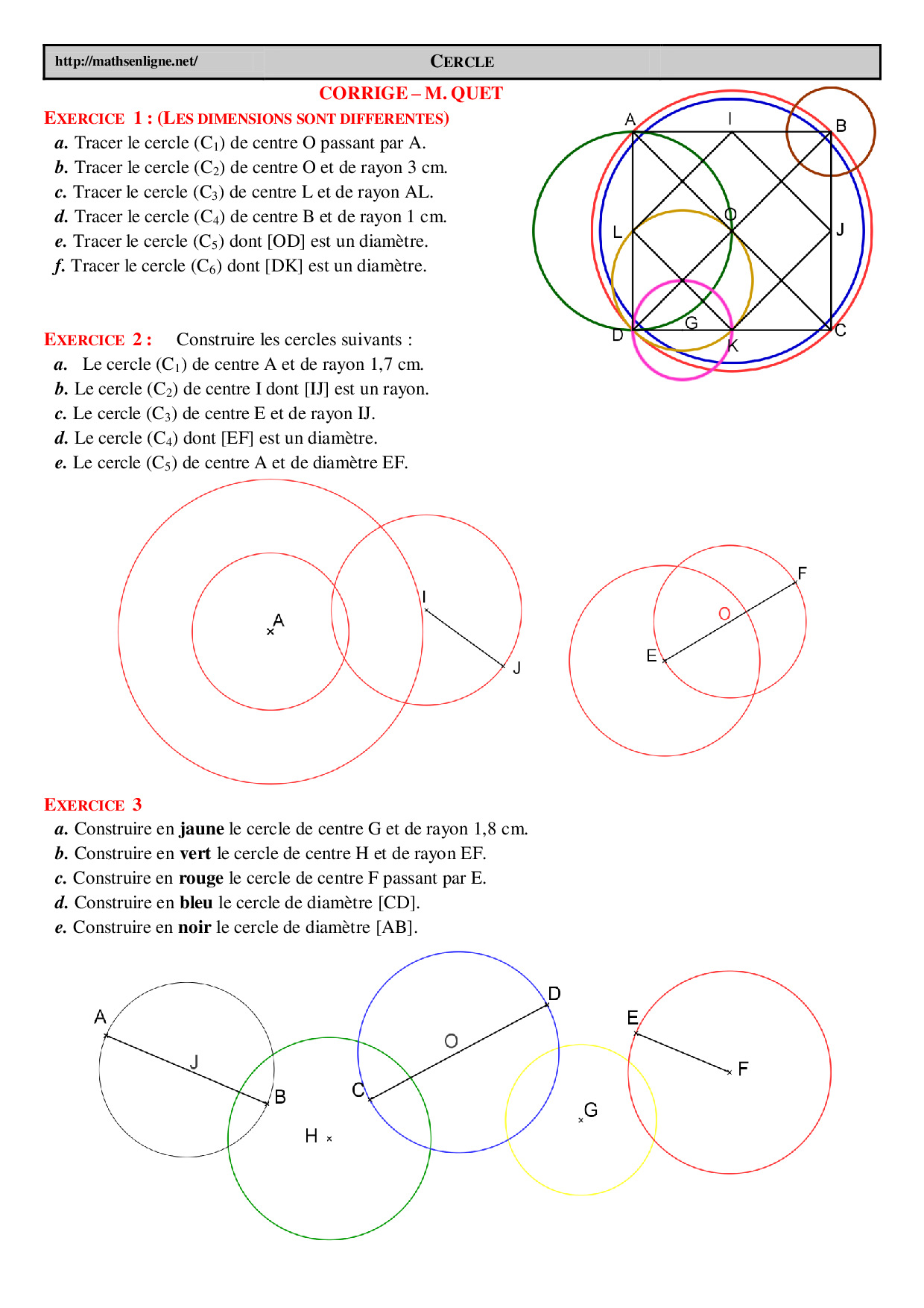 Cercle- Constructions à partir d'une description - Corrigé d'exercices