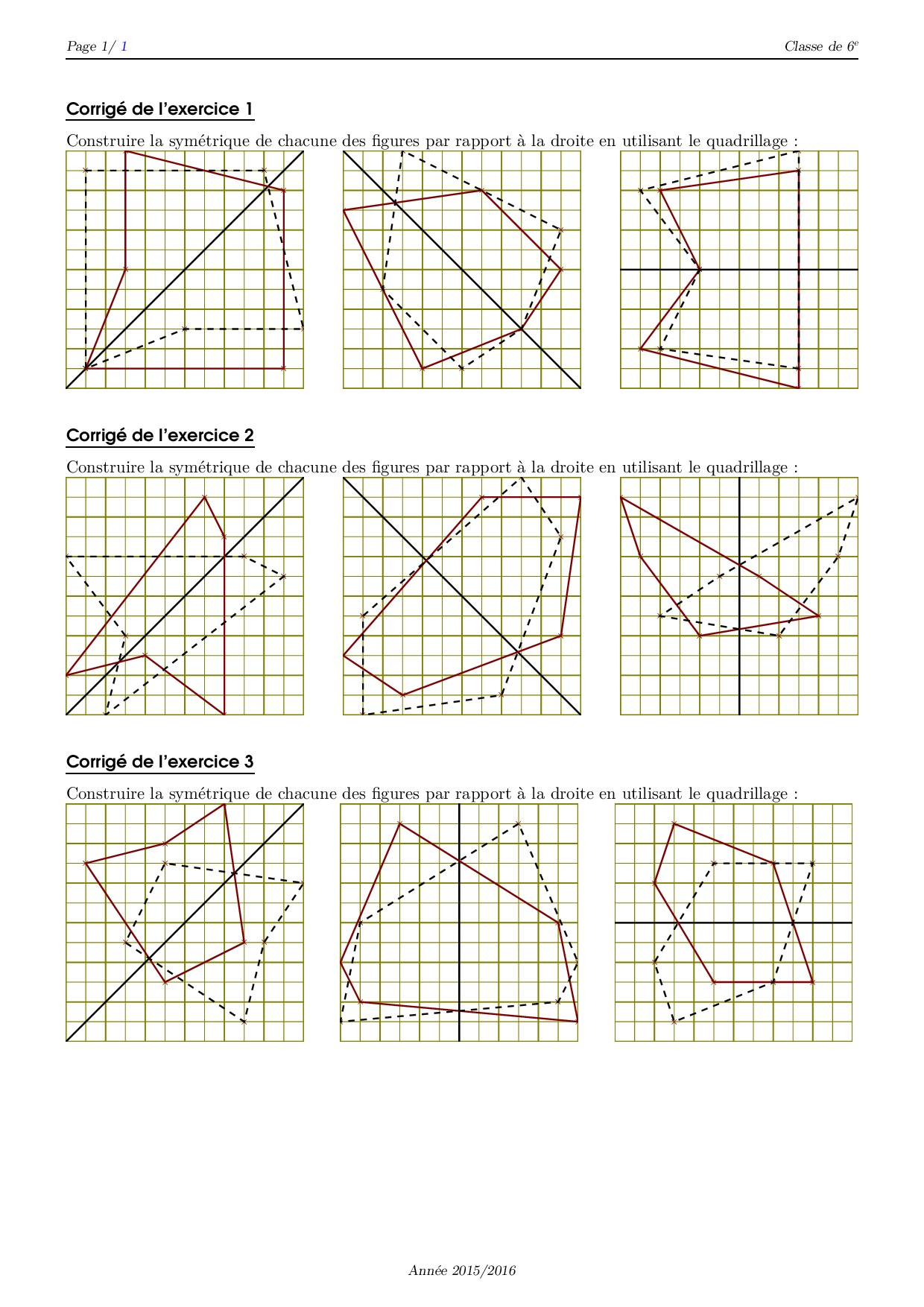 Symétrie et quadrillage - Corrigé série d'exercices 4