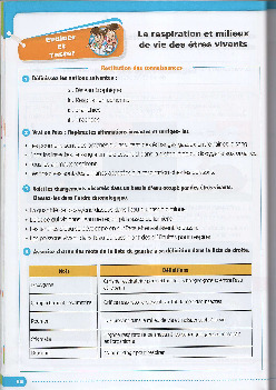 La respiration et milieux de vie des êtres vivants - Exercices (Manuel 1)