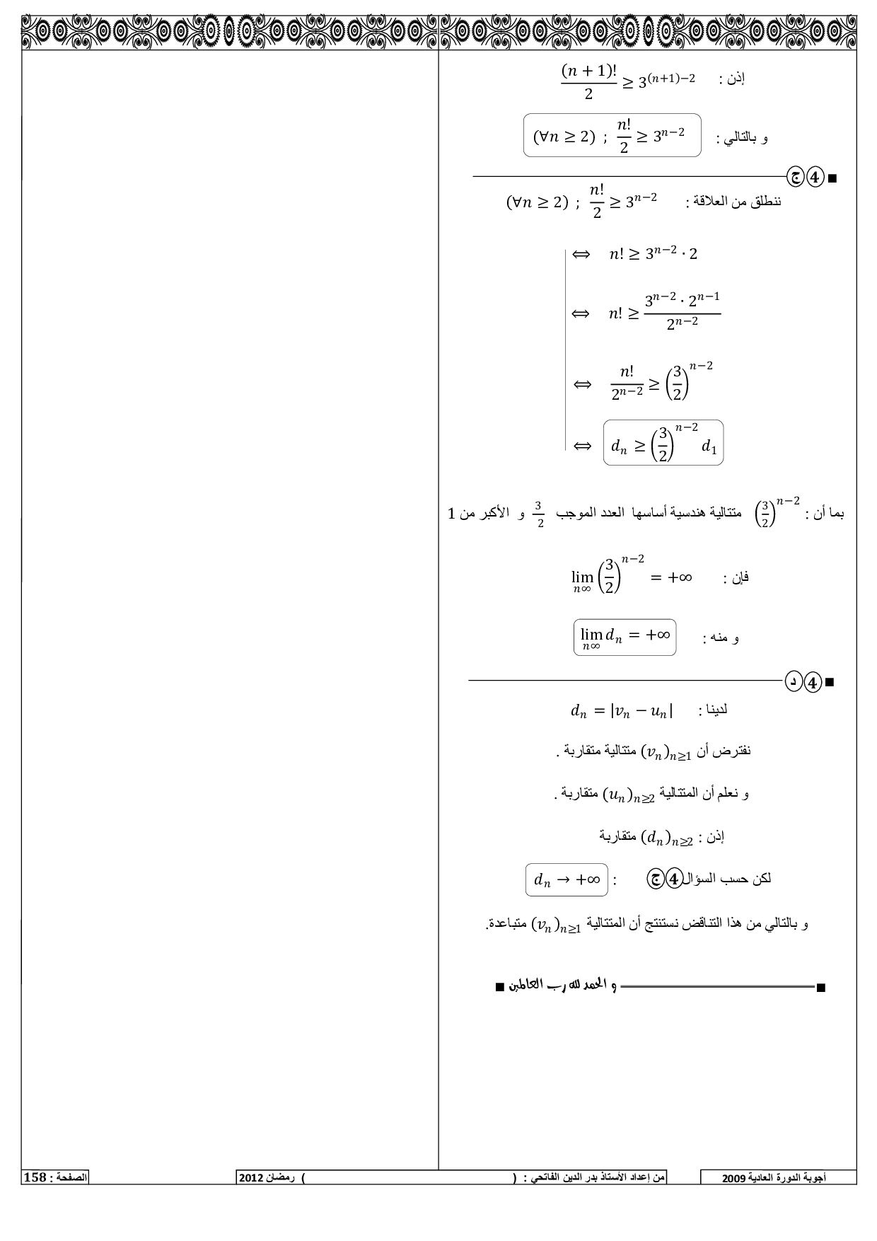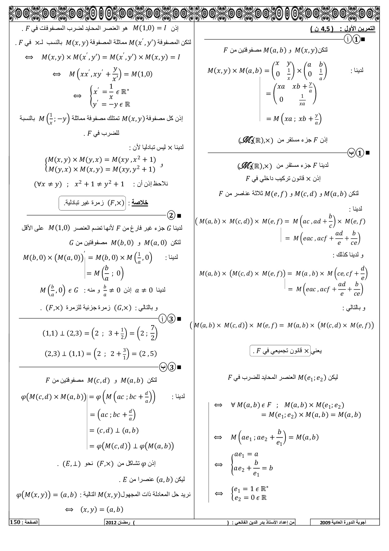 الرياضيات علوم رياضية 2009 الدورة العادية - التصحيح