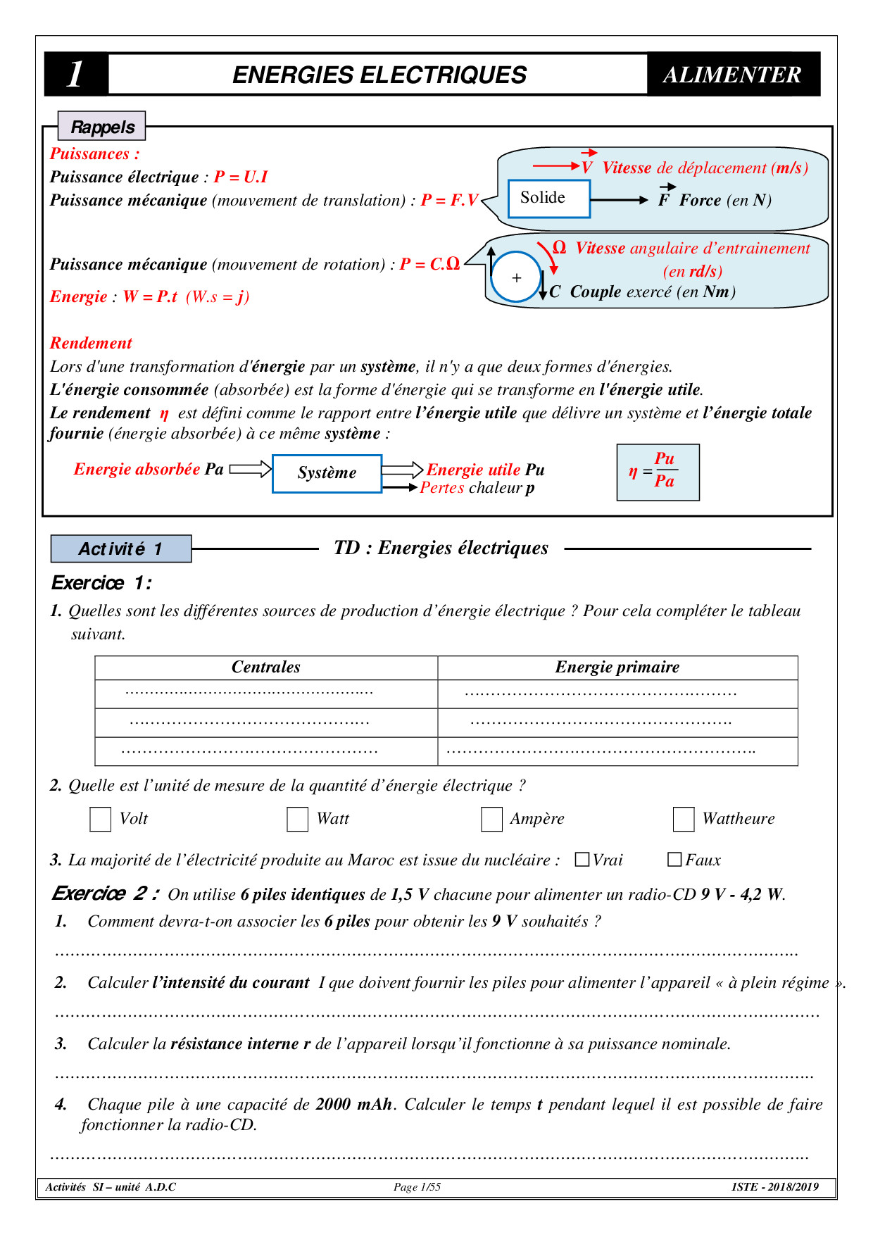 Sciences de l'ingénieur: 1er BAC Sciences et Technologies Electriques