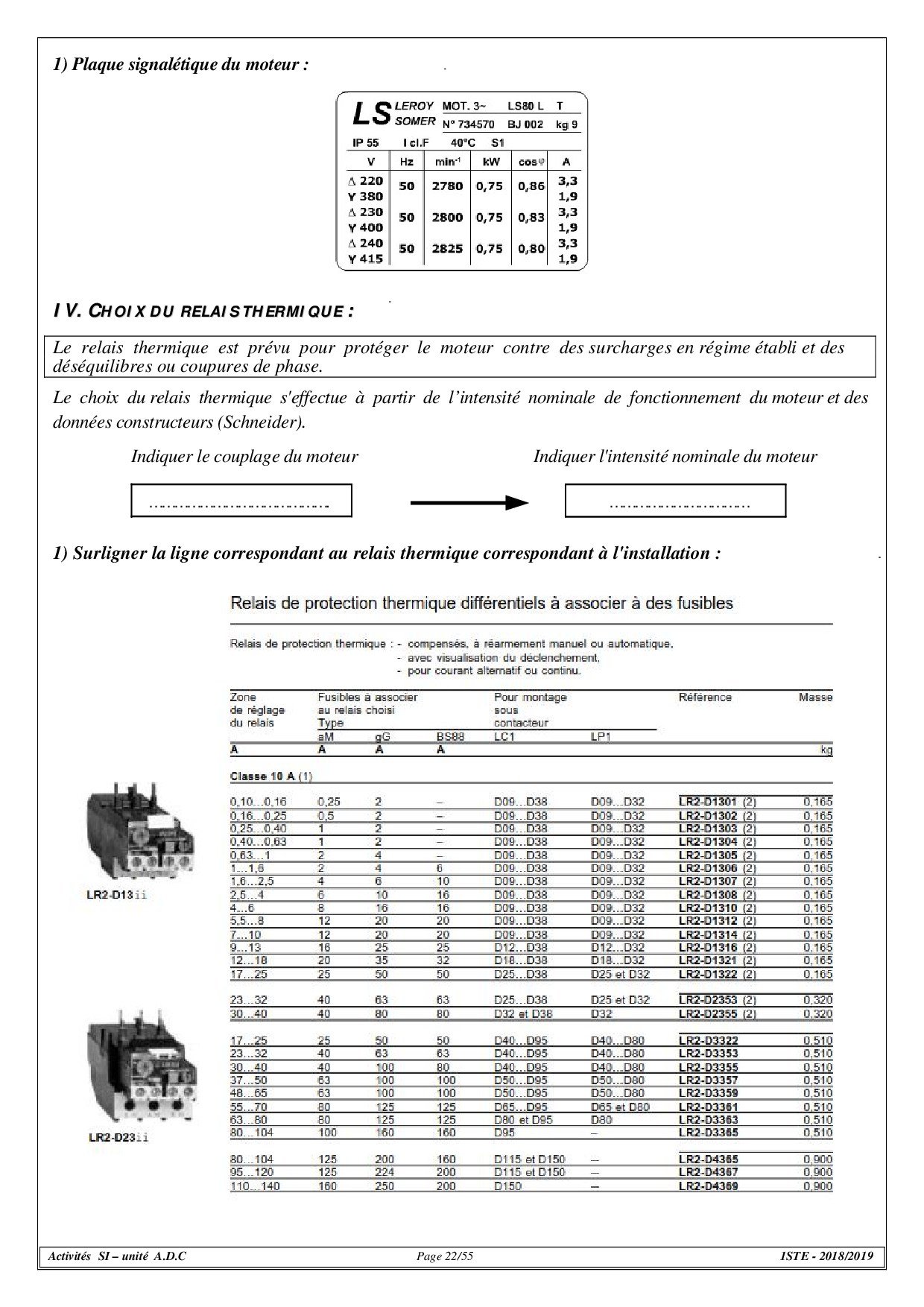 Fonction distribuer (Préactionneurs électriques) - Exercices