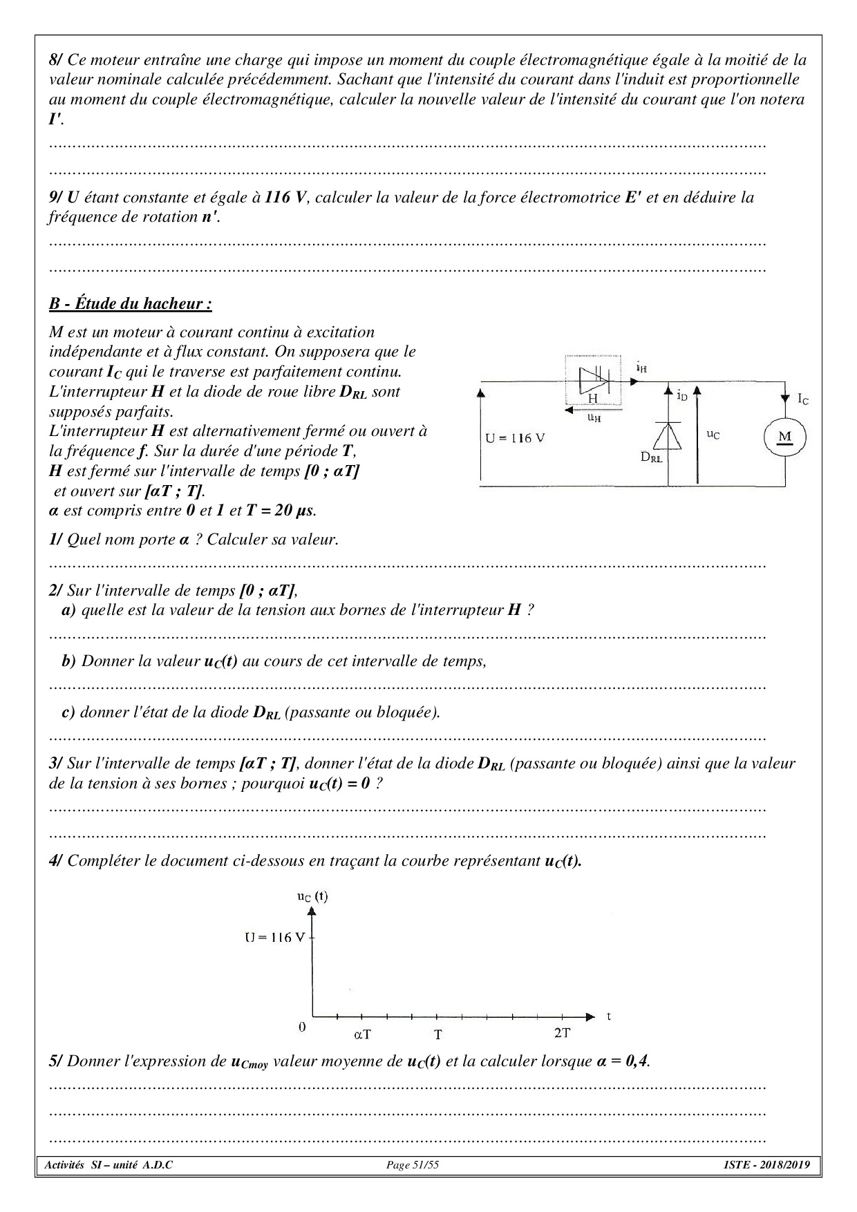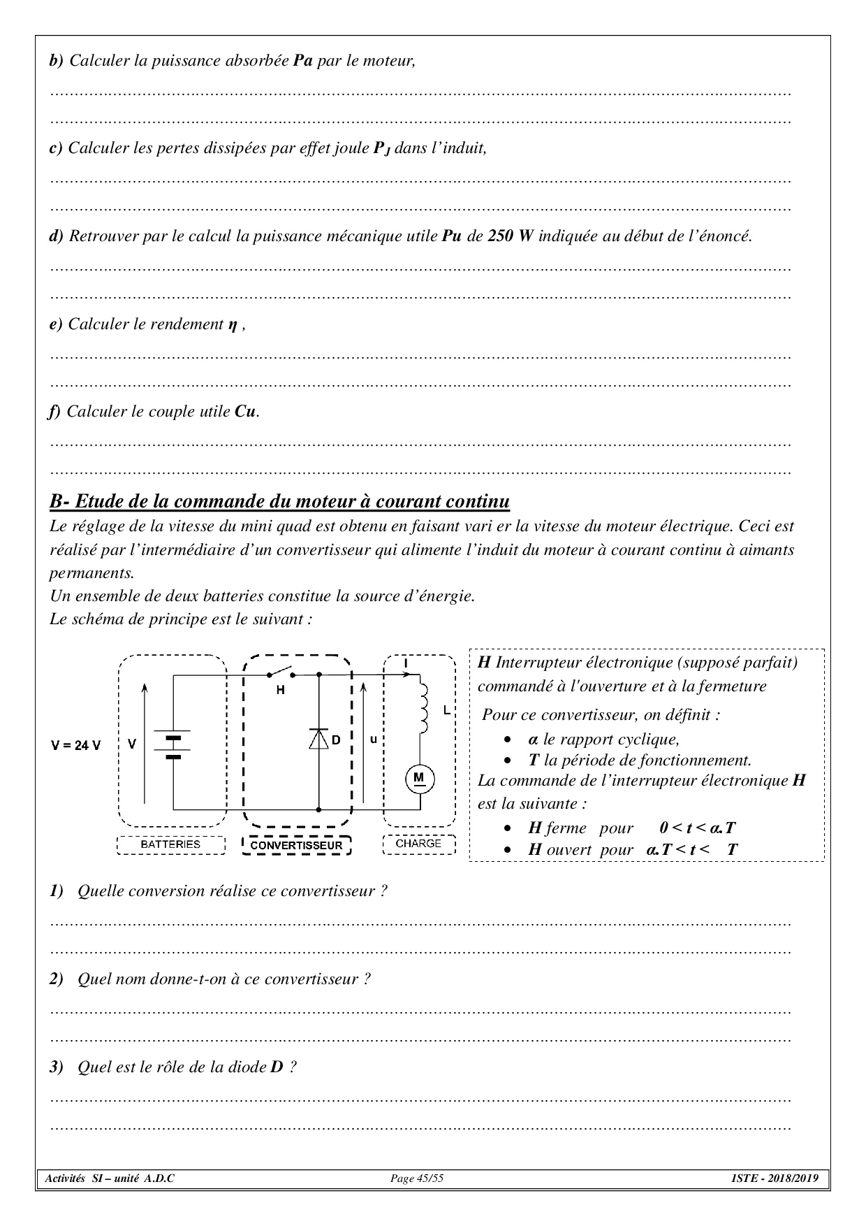 Fonction Convertir (Actionneur électrique - Moteur à Courant Continu MCC) - Exercices
