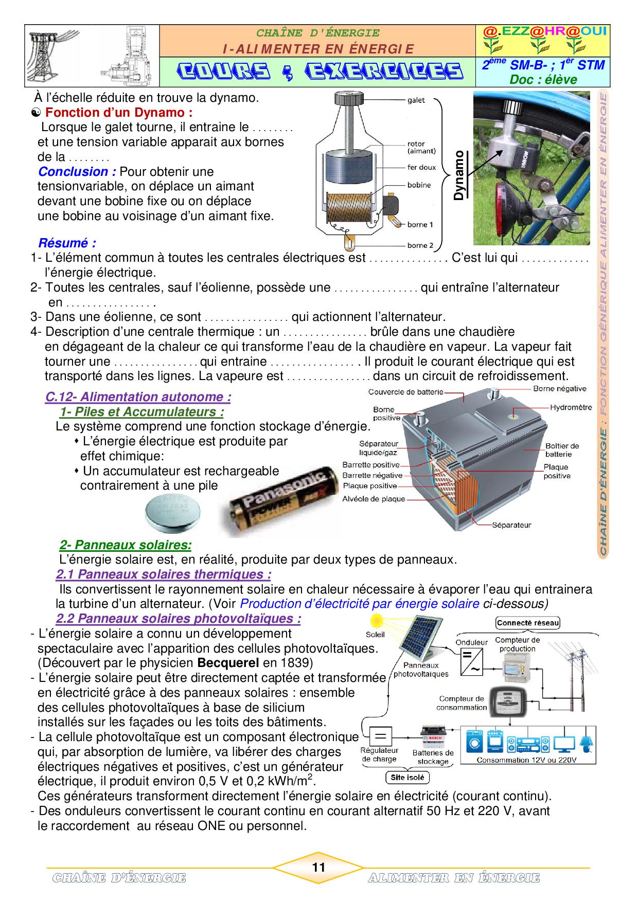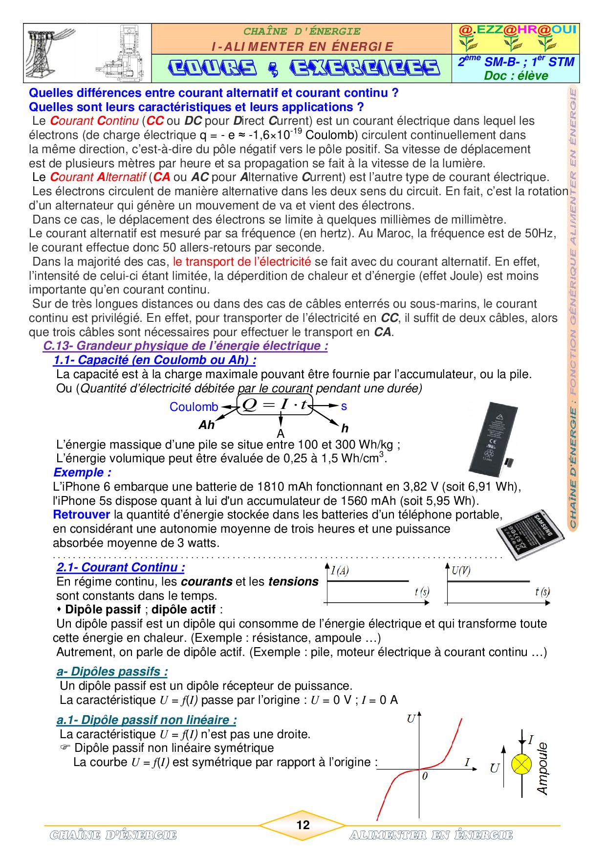 Energie électrique - Cours et exercices