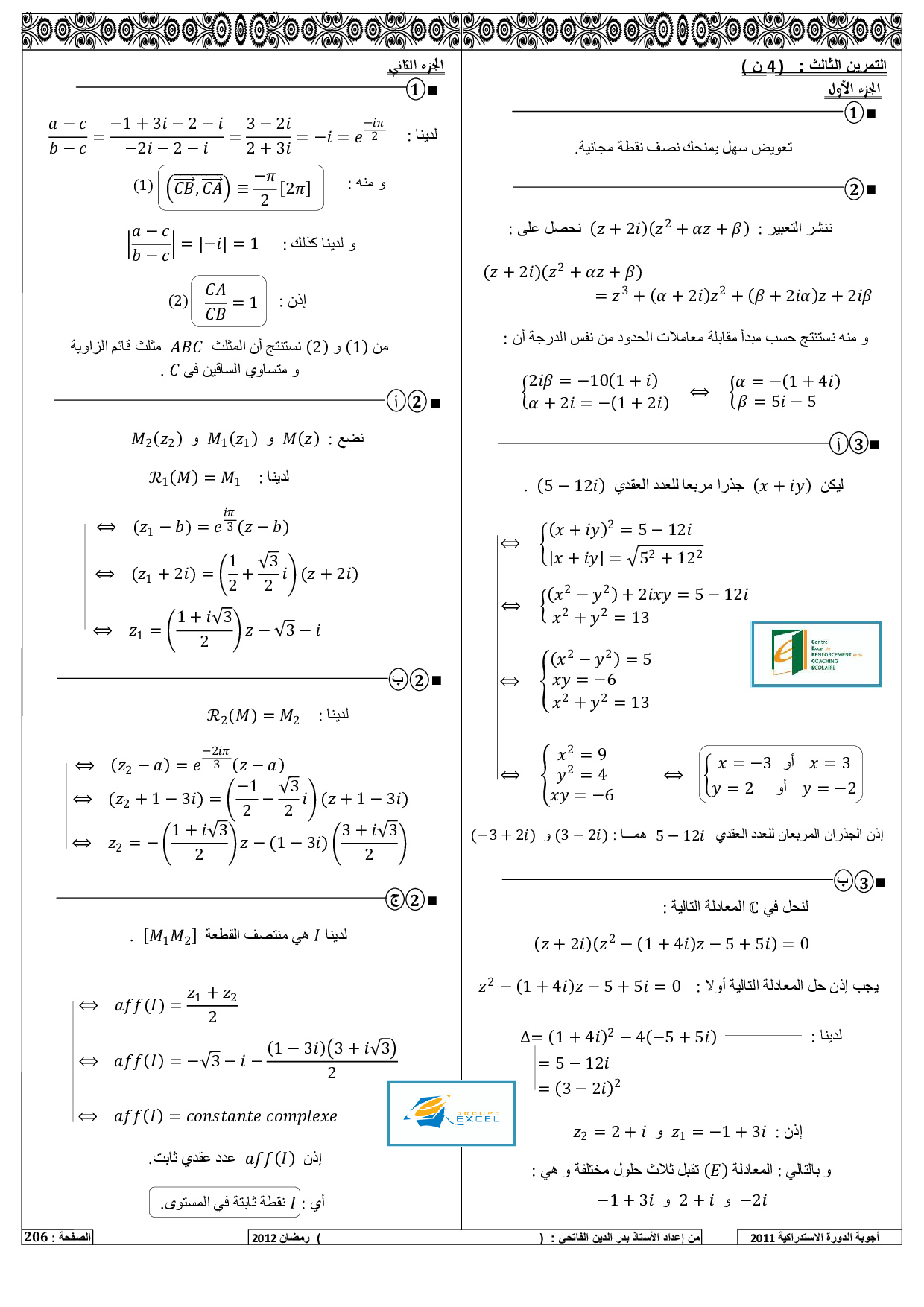 الرياضيات علوم رياضية 2011 الدورة الإستدراكية - التصحيح