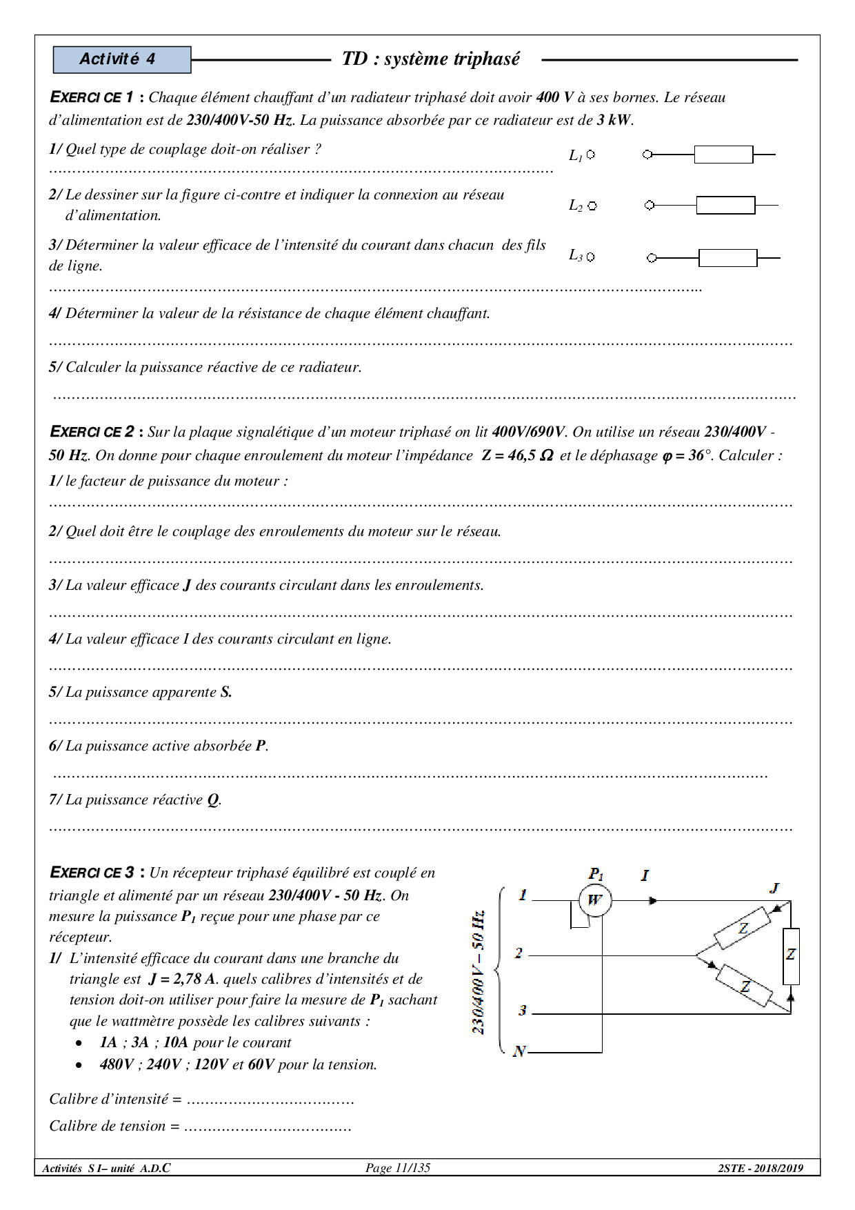 Fonction Alimenter - Système triphasé (Résumé et exercices)