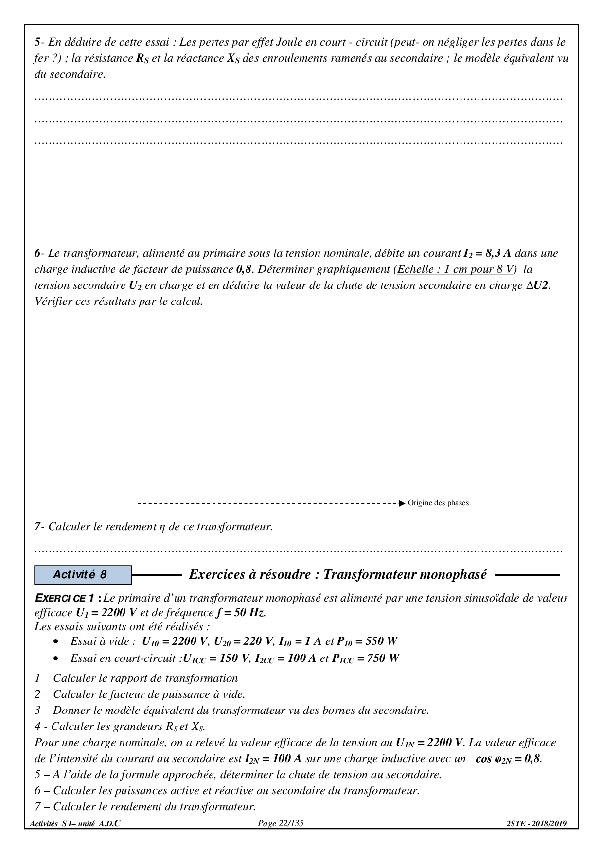 Fonction Alimenter - Transformateur monophasé (Résumé et exercices)