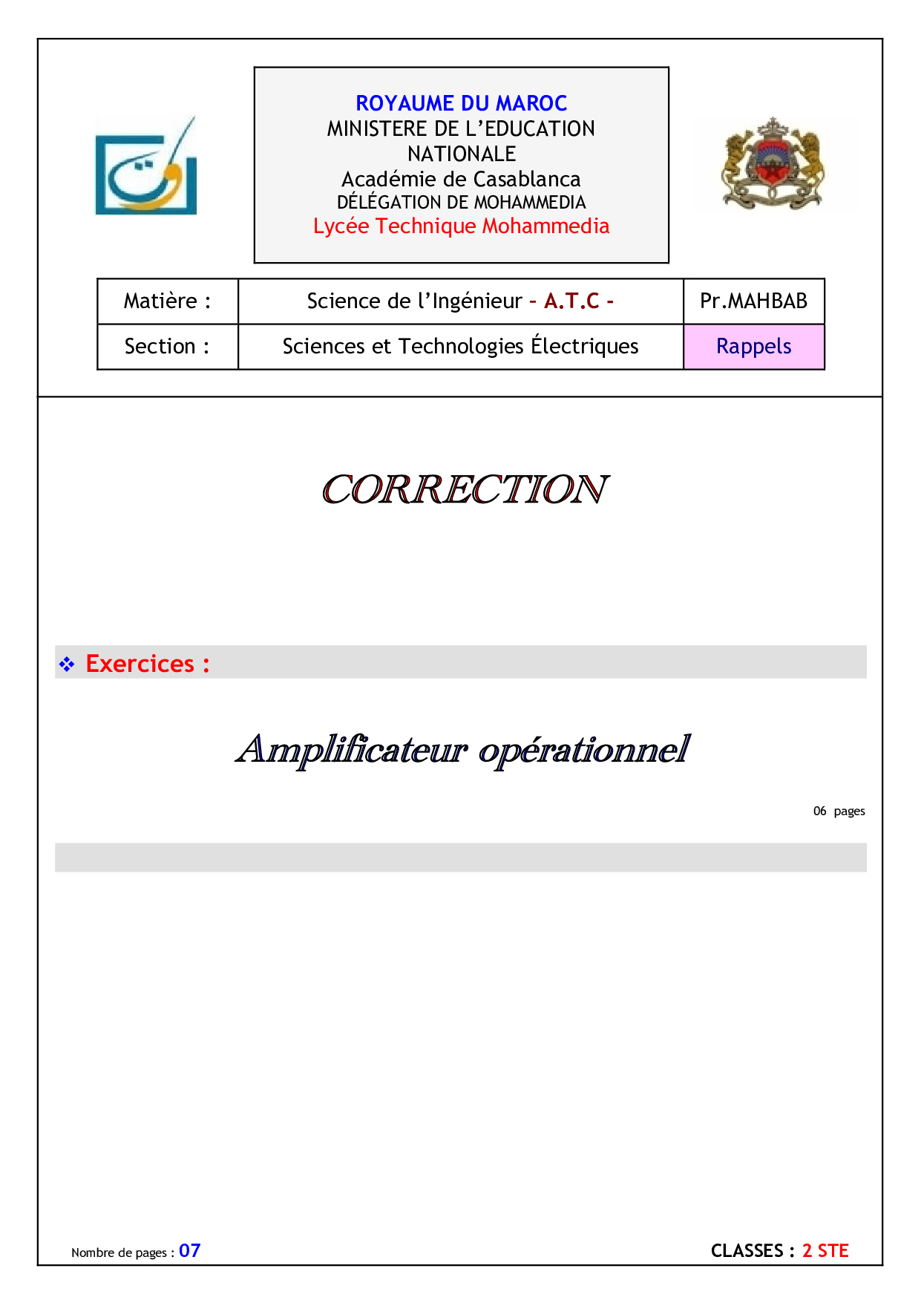 Sciences de l'ingénieur: 2ème BAC Sciences et Technologies Electriques