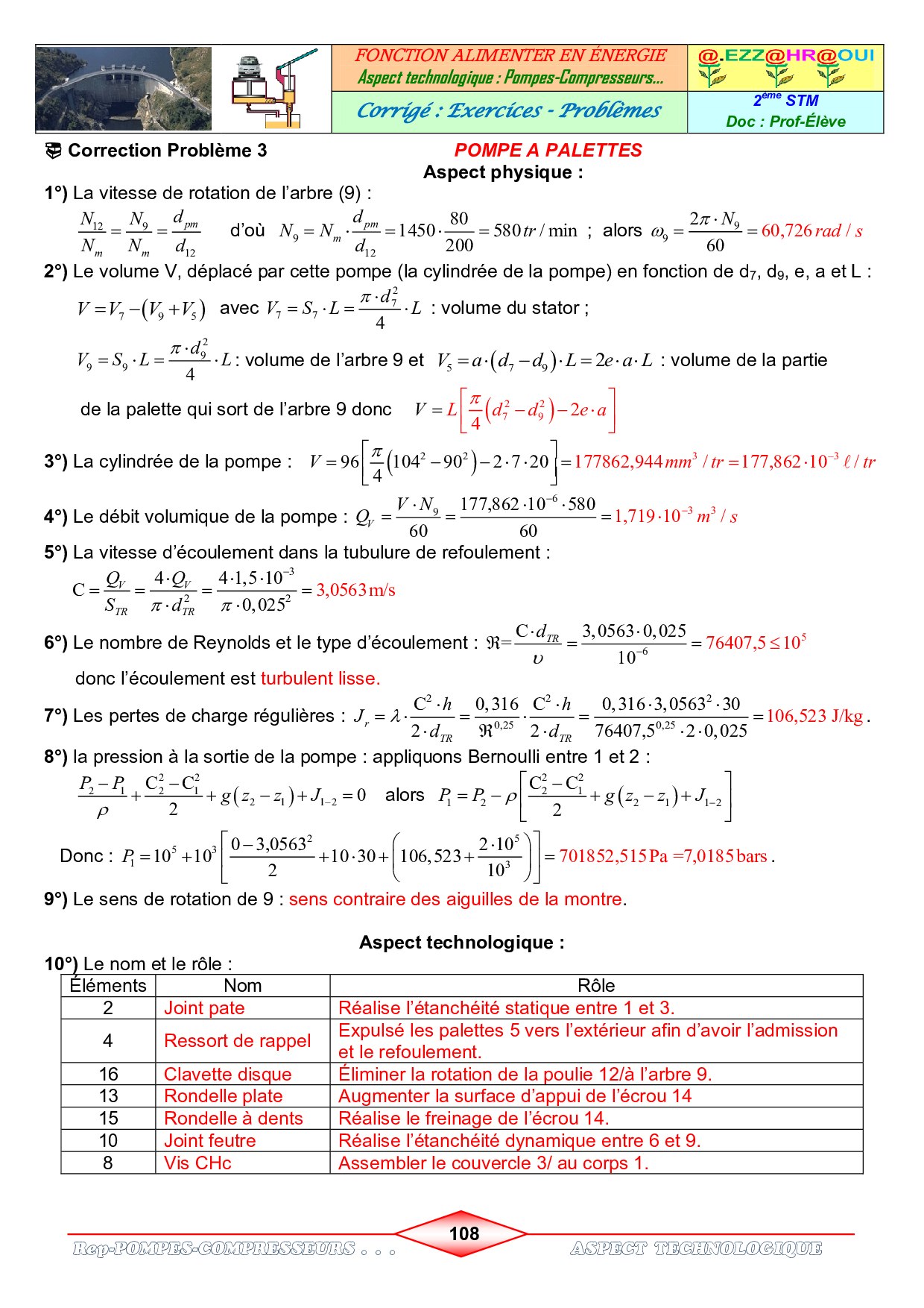Pompes et Compresseurs - Corrigés d'exercices et problèmes