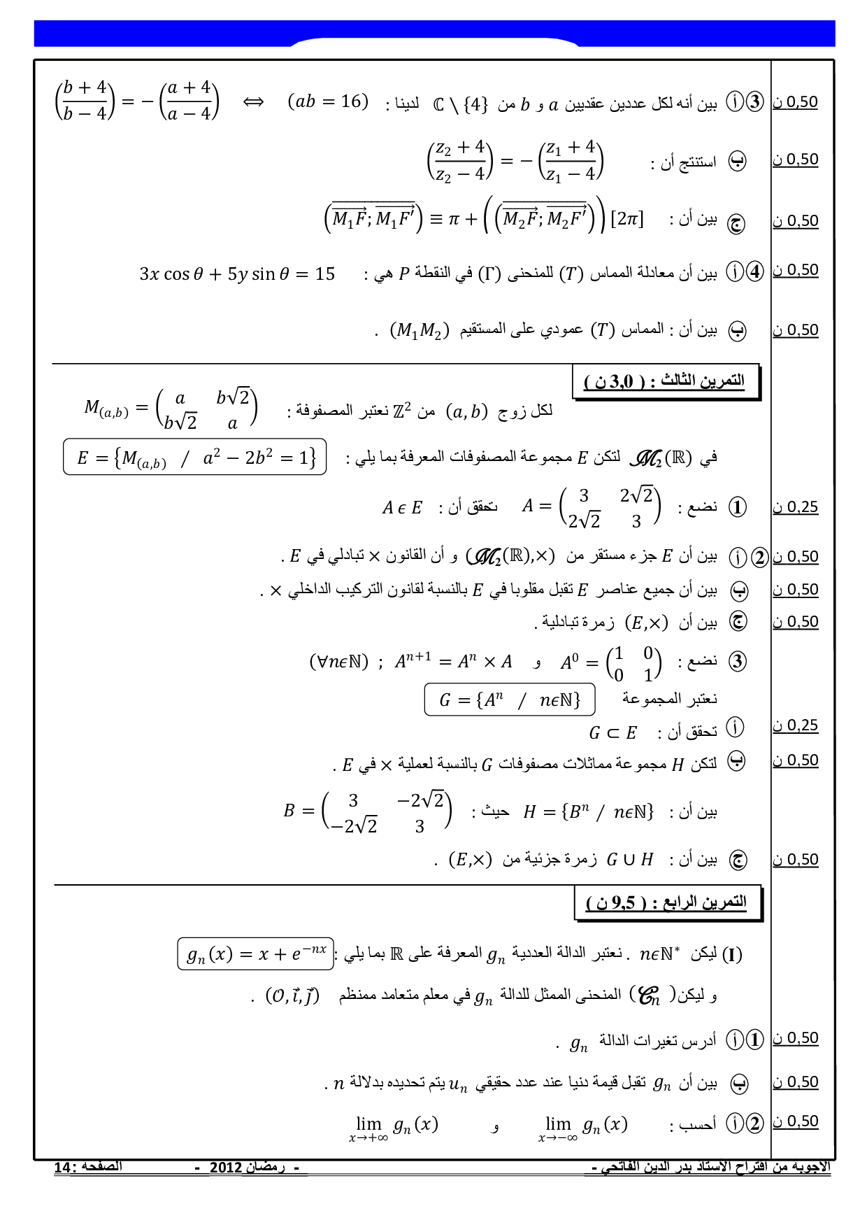 الرياضيات علوم رياضية 2003 الدورة الإستدراكية - الموضوع