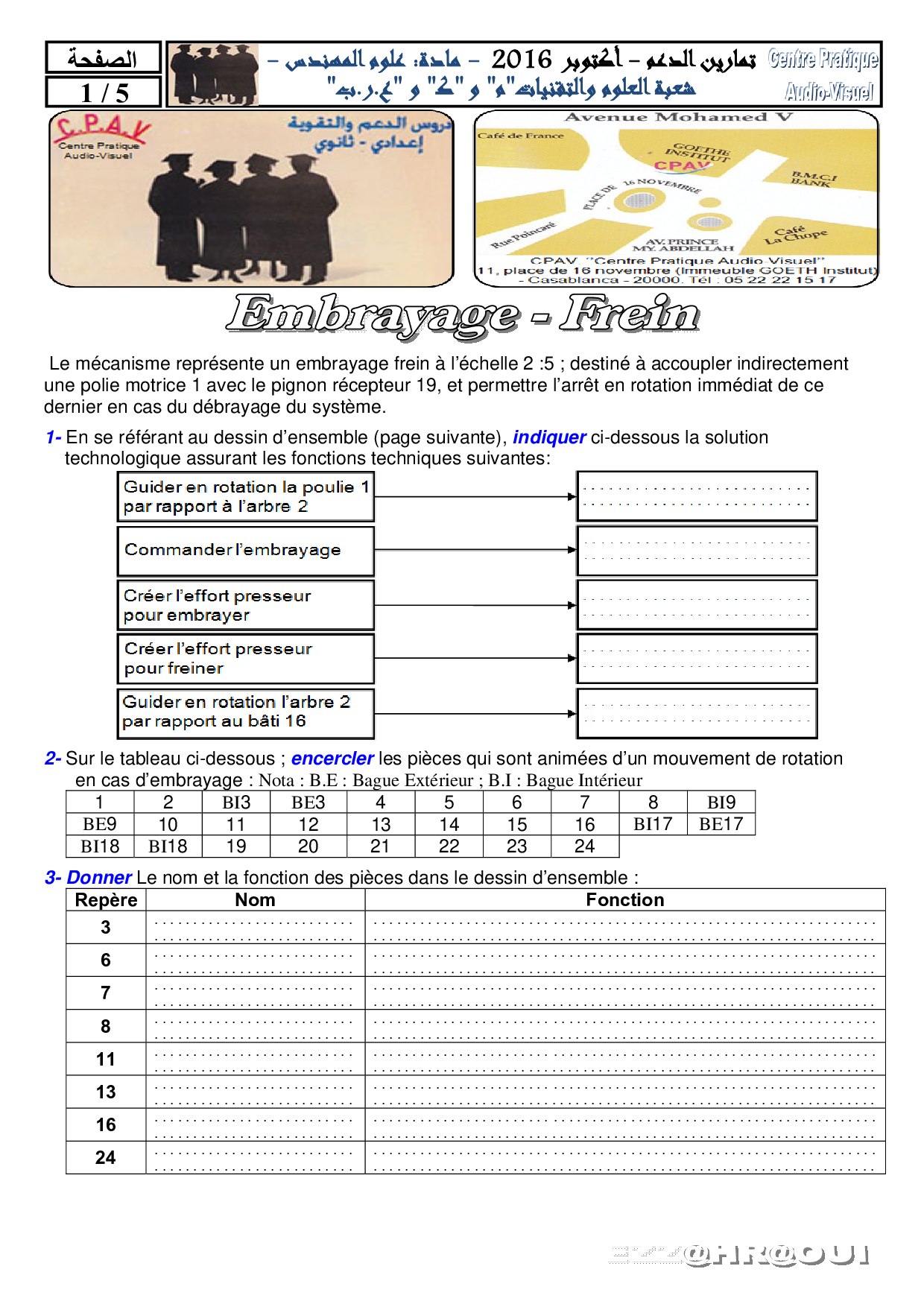 Application 2 (Embrayage-Frein) - Enoncé
