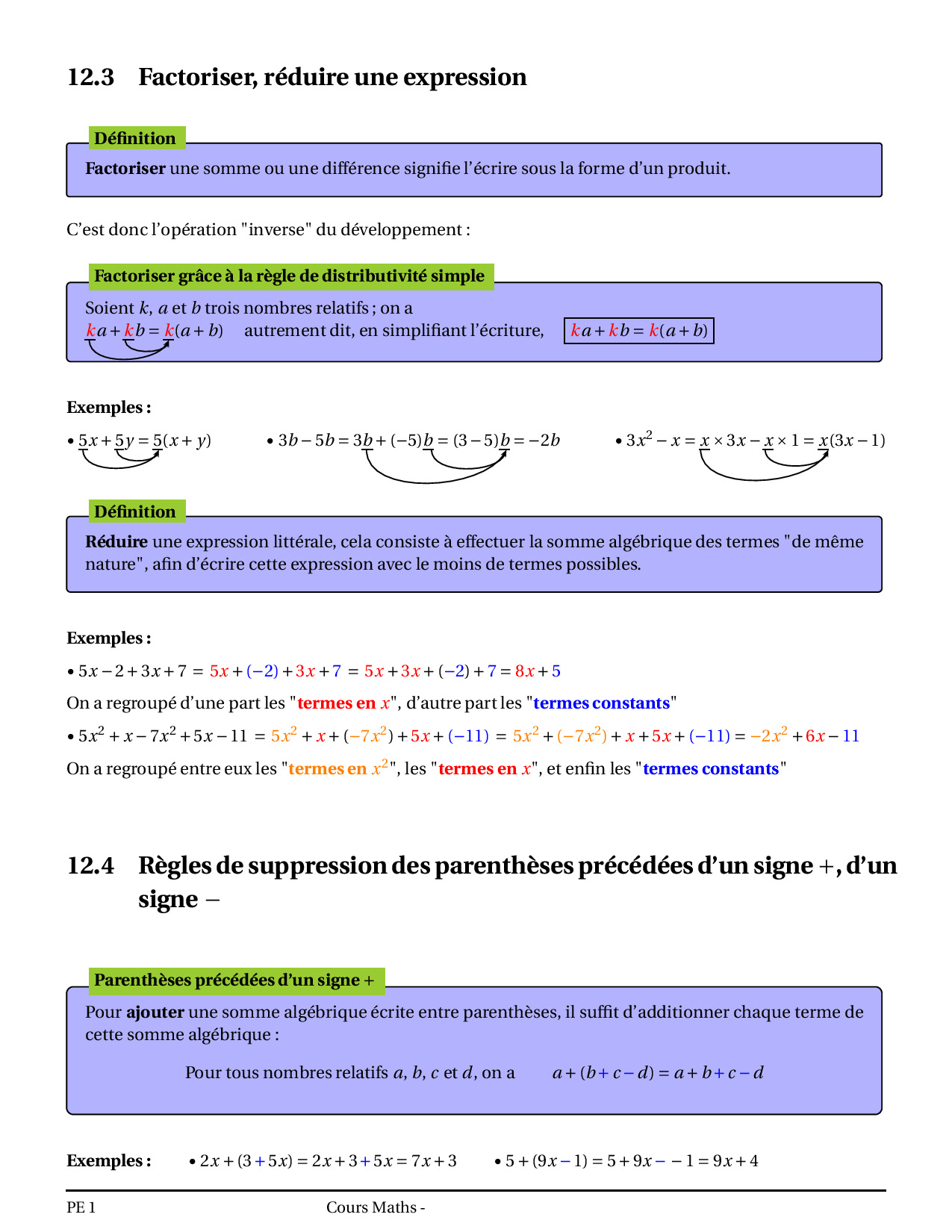 Calcul littéral et équations - Cours