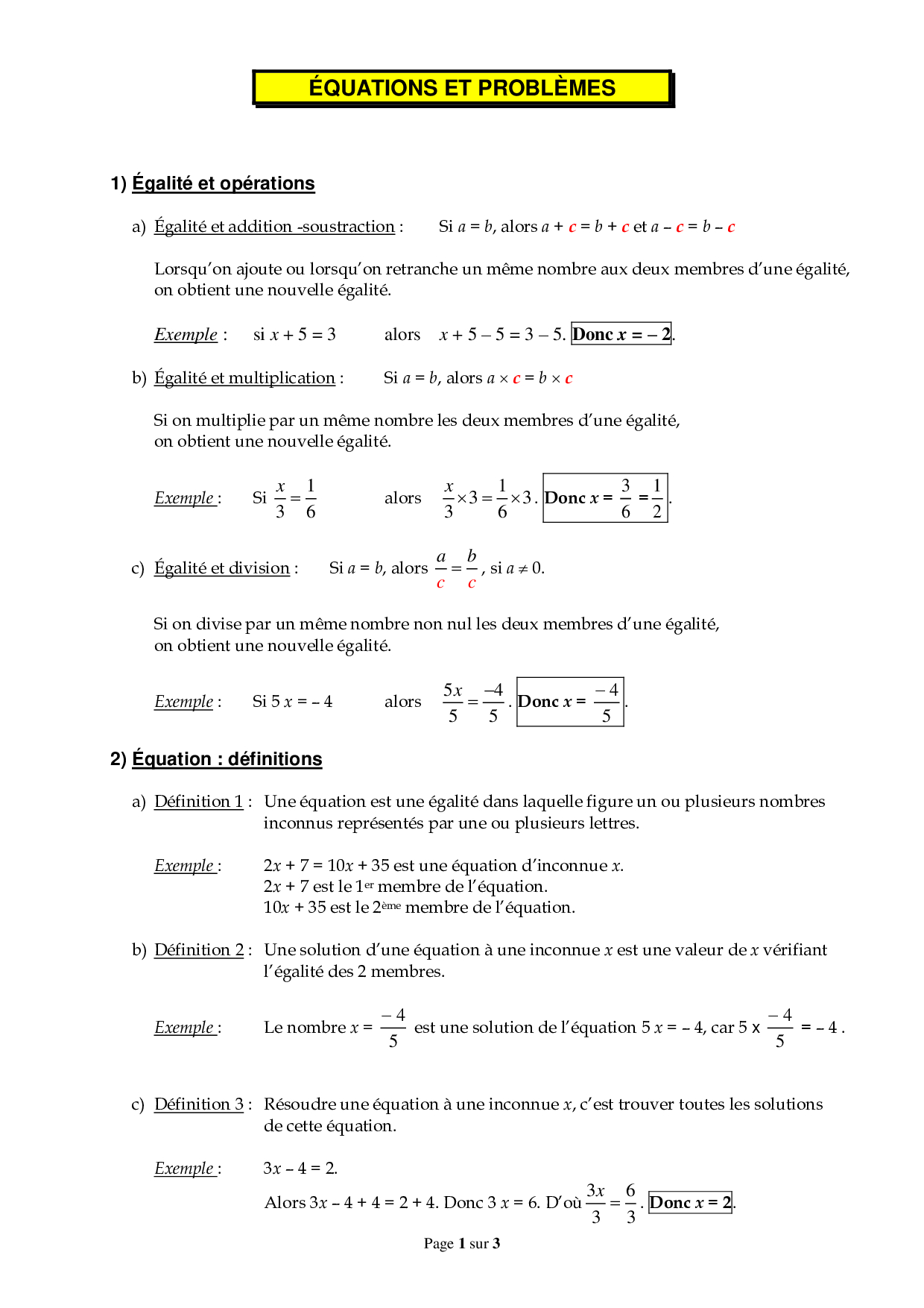 Equations - Cours