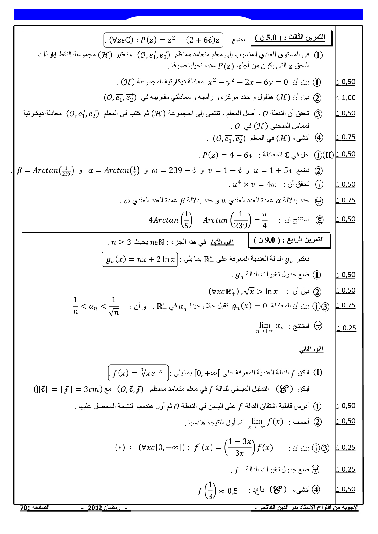 الرياضيات علوم رياضية 2006 الدورة العادية - الموضوع