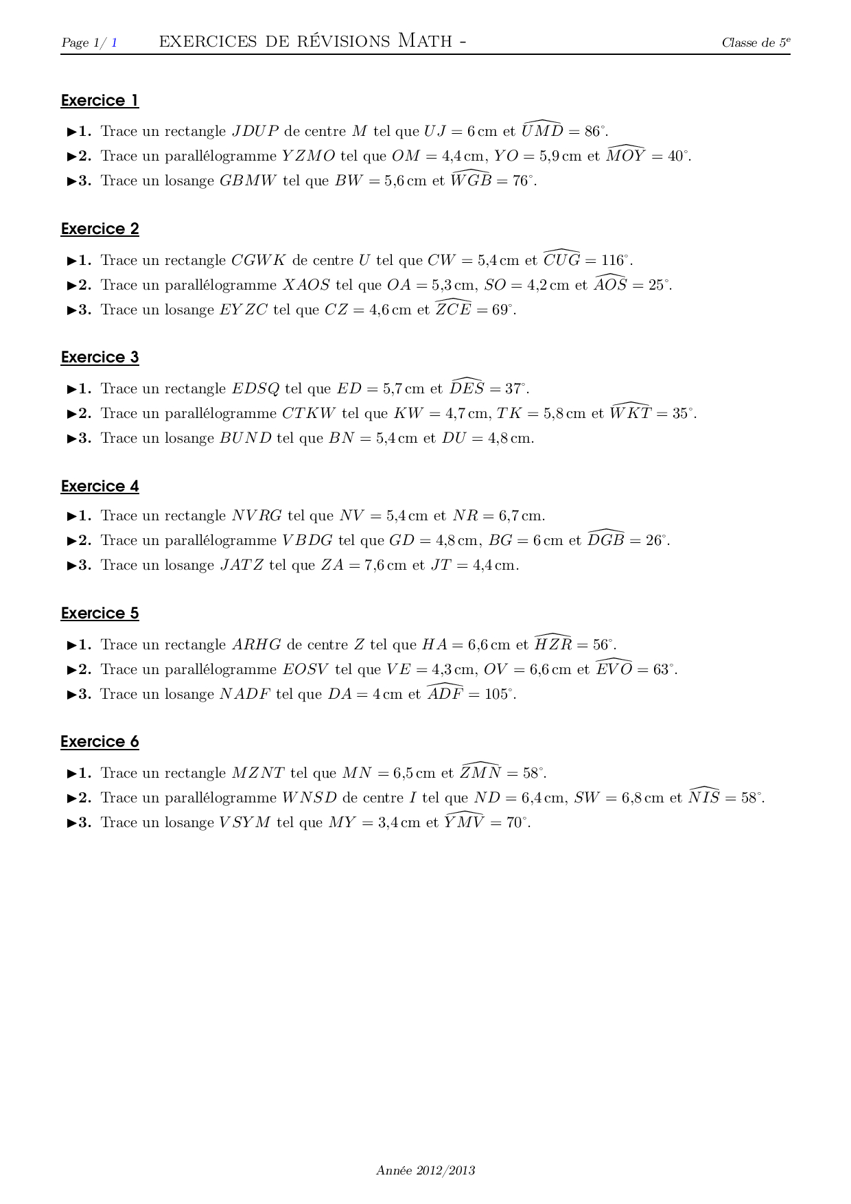Construction de parallélogrammes - Série d'exercices 2