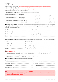 Expressions littérales - Résumé de cours et Travaux dirigés