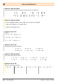 Calcul littéral - Résumé de cours et Travaux dirigés