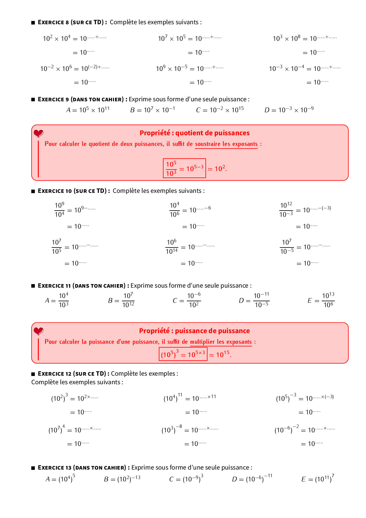 Puissances - Résumé de cours et Travaux dirigés
