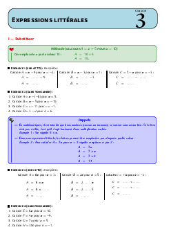 Expressions littérales - Résumé de cours et Travaux dirigés
