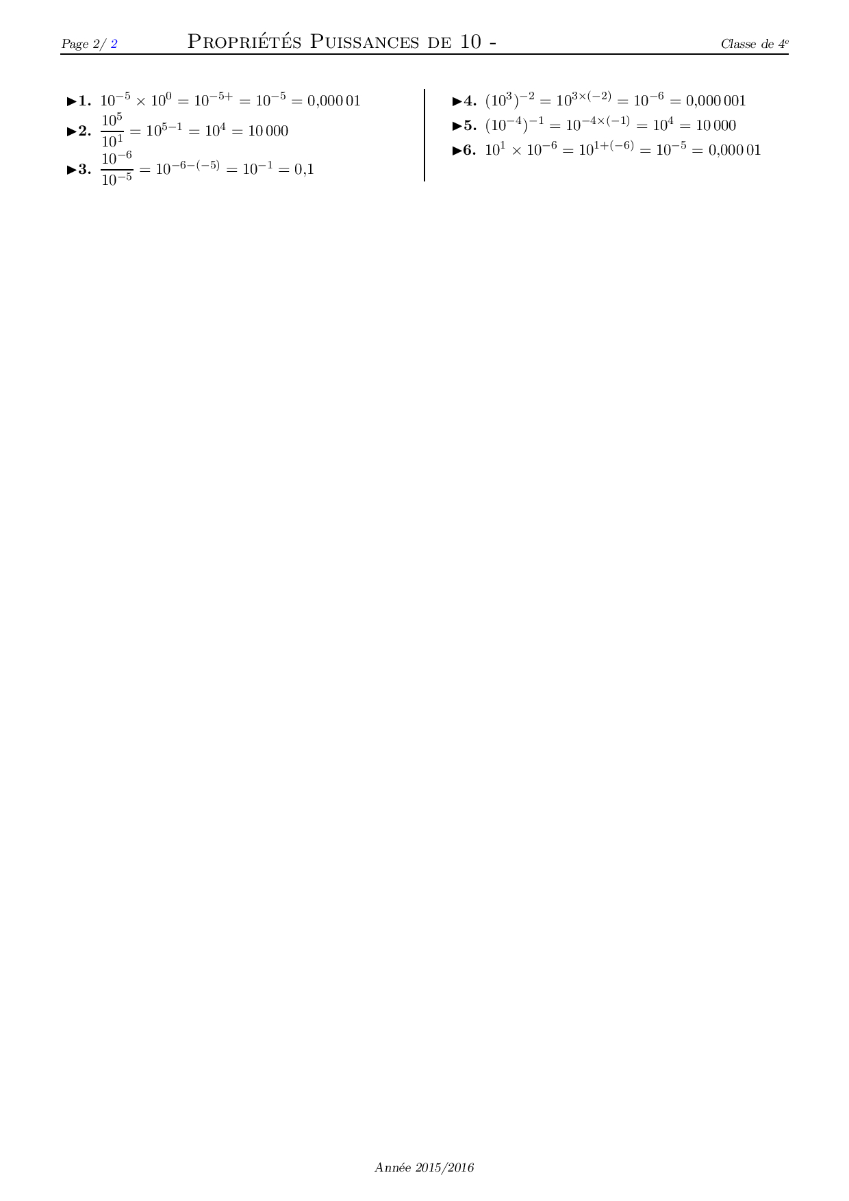 Propriétés sur les puissances de 10 - Corrigé série d'exercices 4