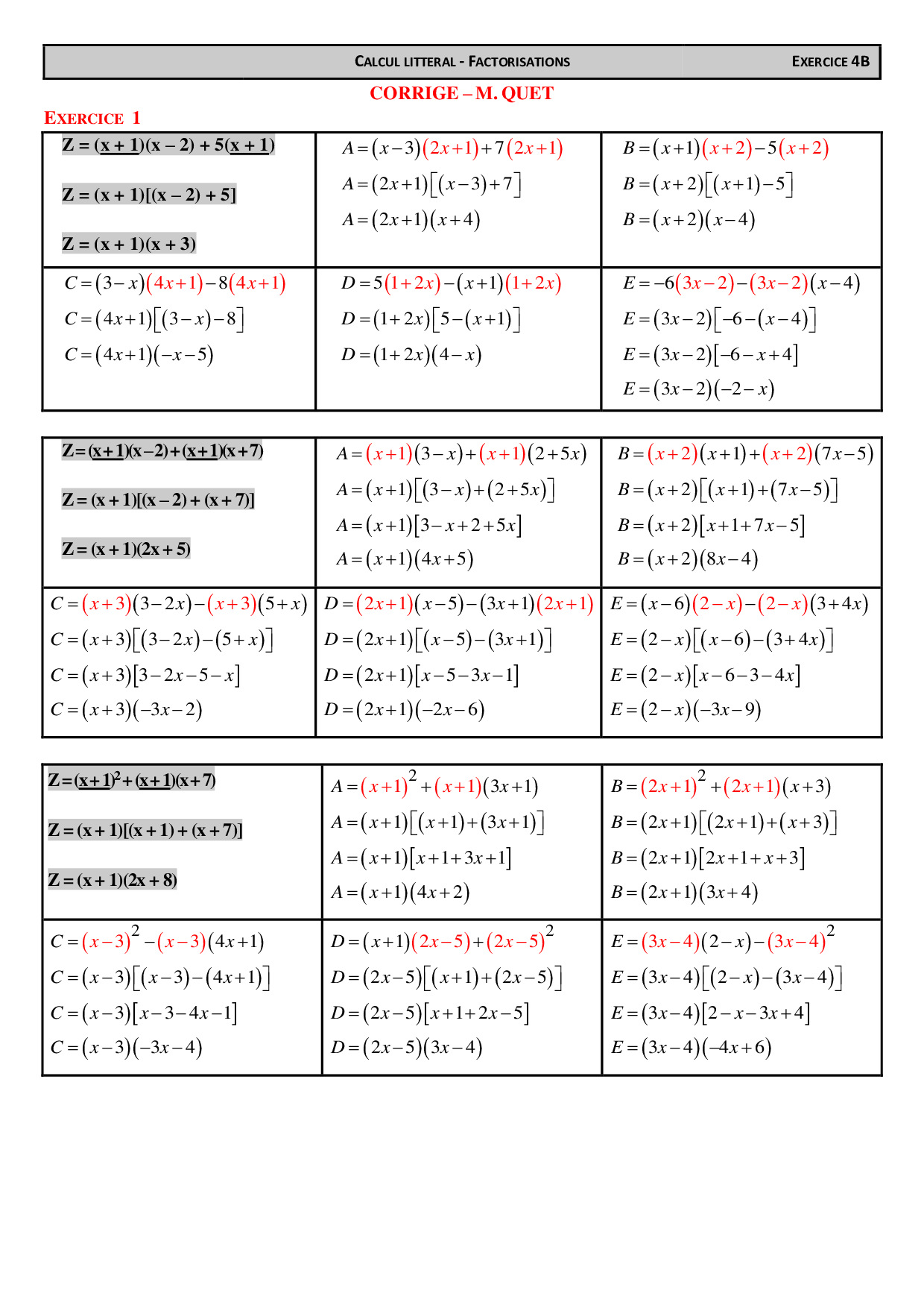Factorisations - Corrigés d'exercices 2