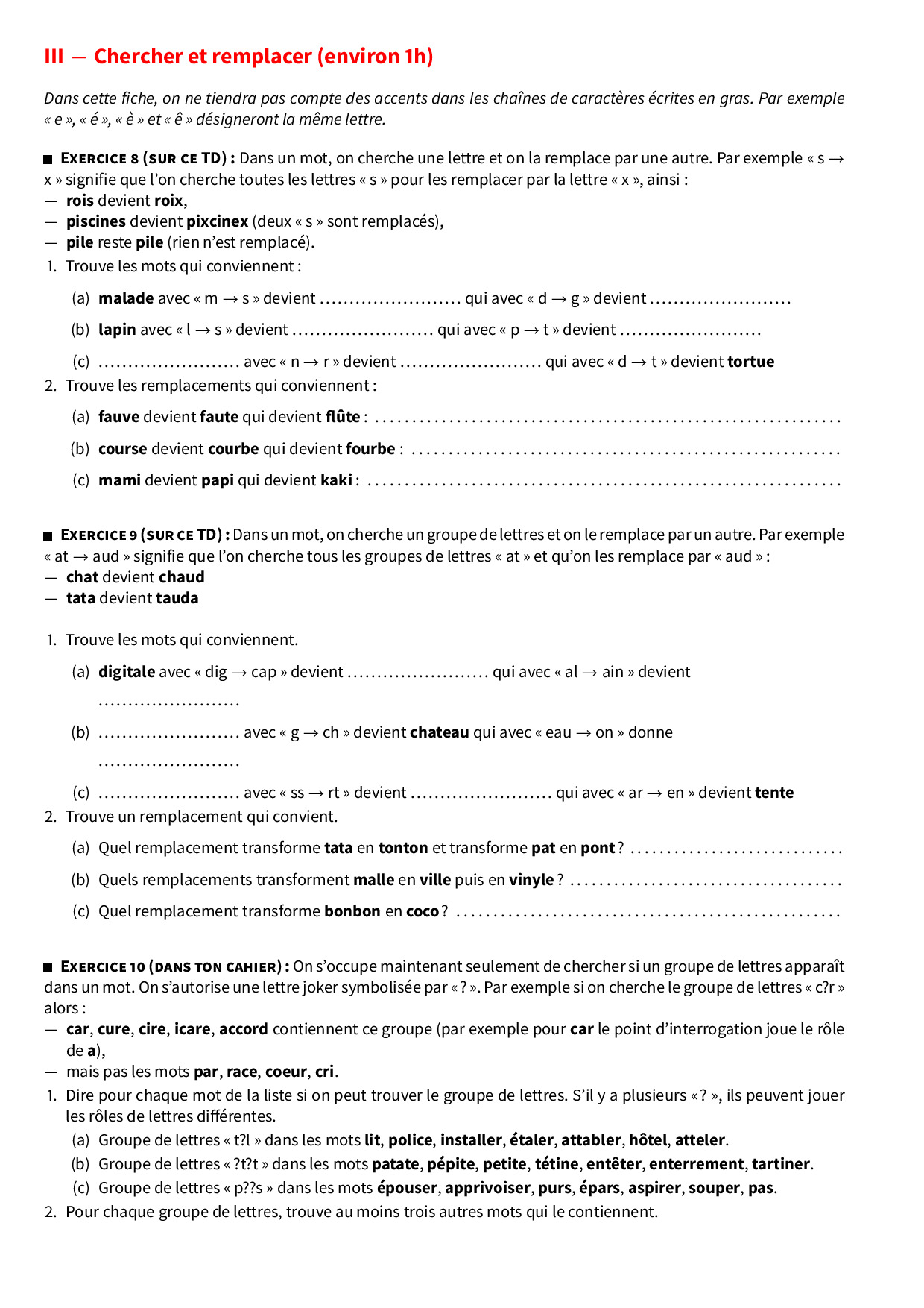 Algorithmie débranchée - Travaux dirigés