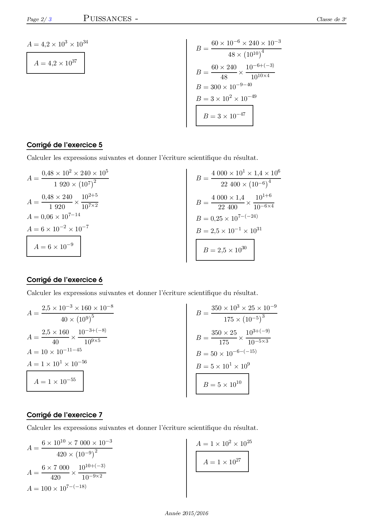 Puissances - Corrigé série d'exercices 4