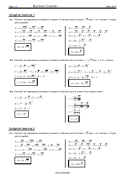 Racines Carrées - Corrigé série d'exercices 1