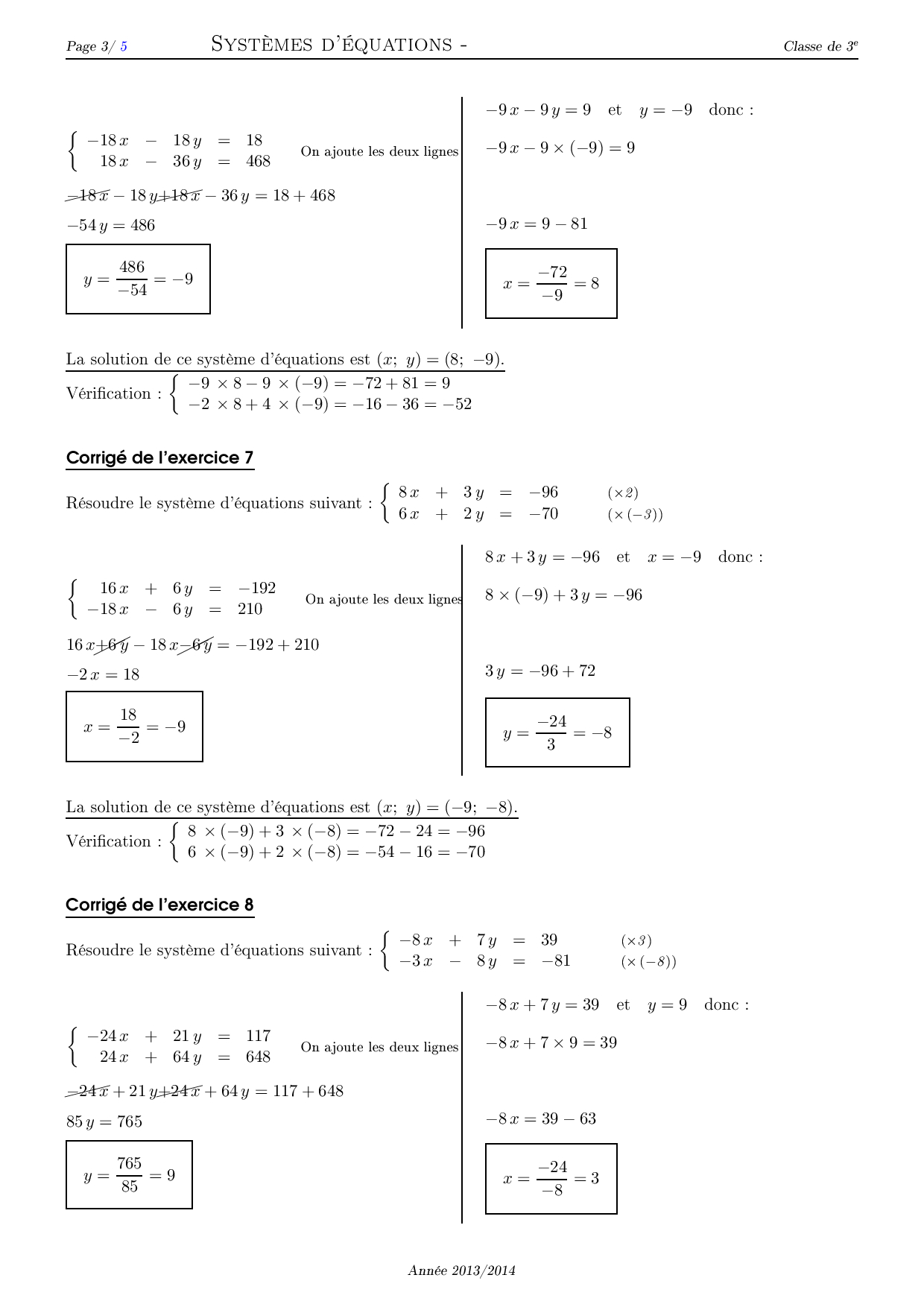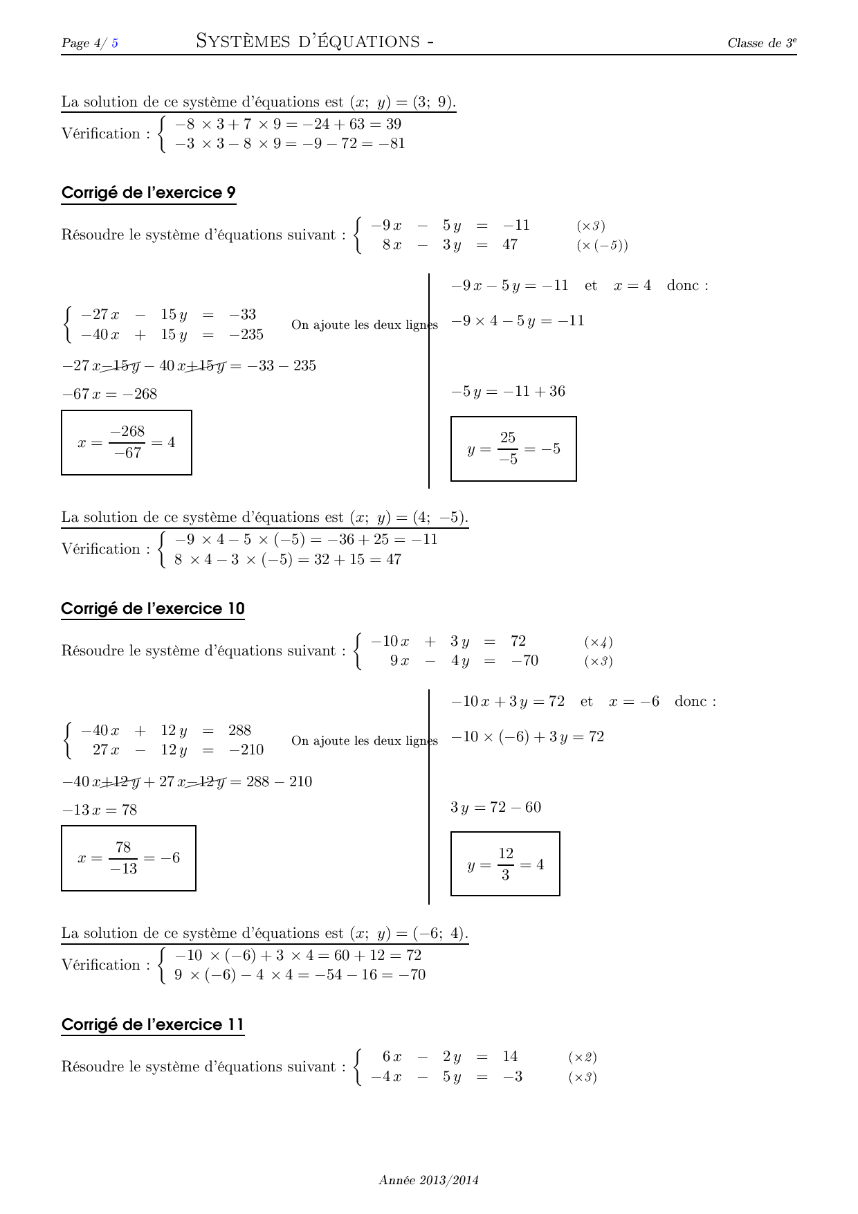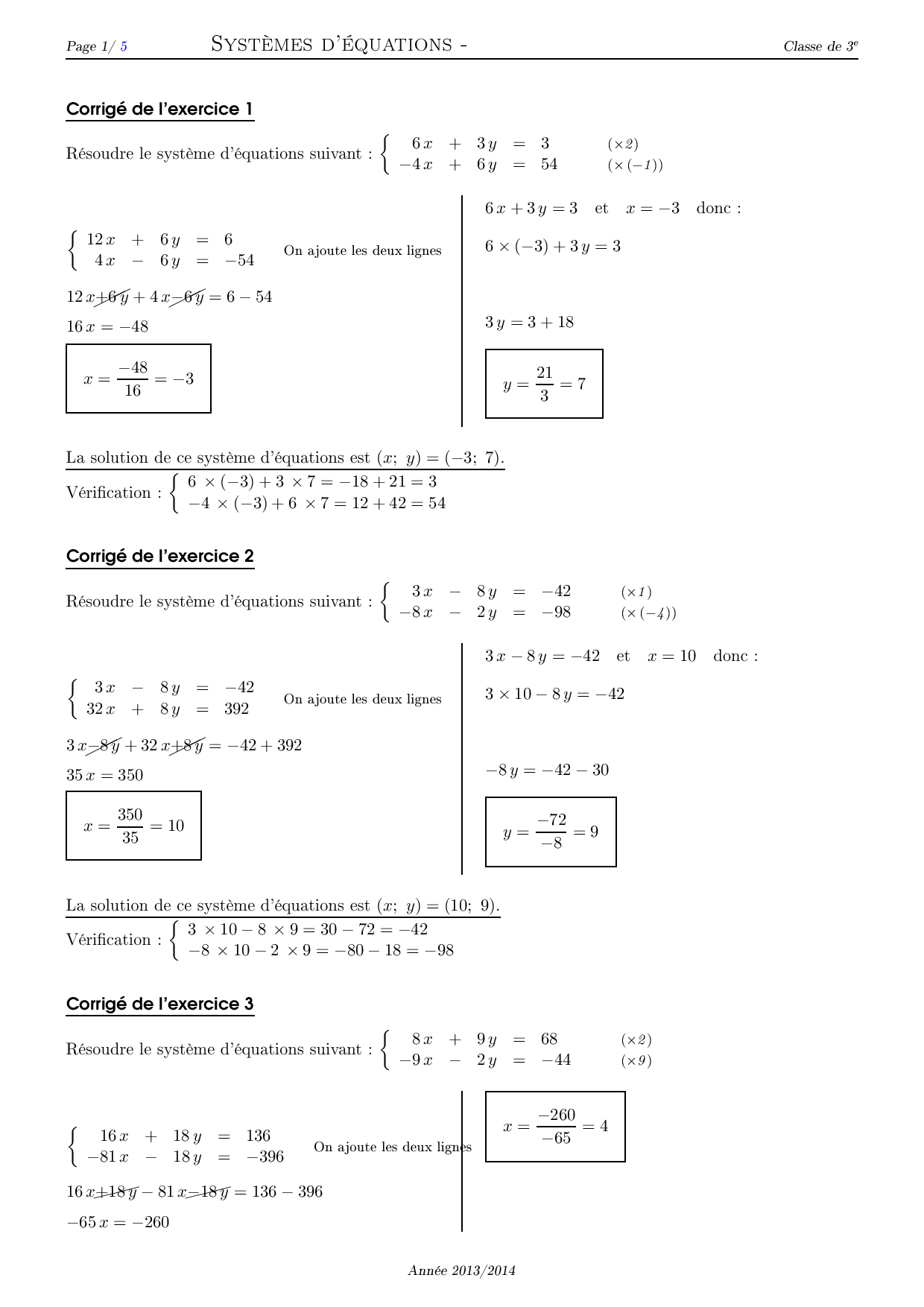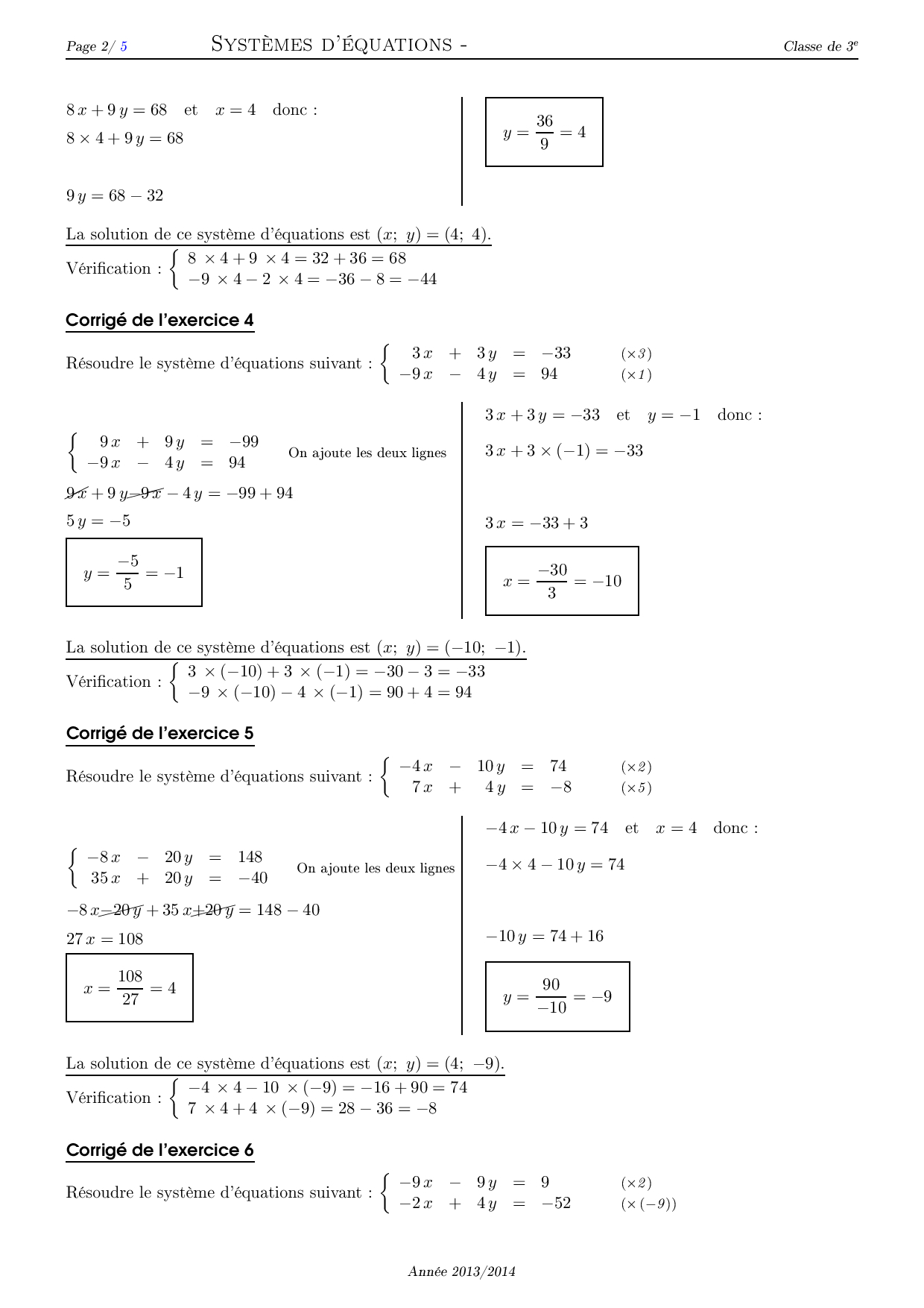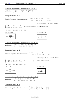 Résolution d'un système d'équations - Corrigé série d'exercices 2