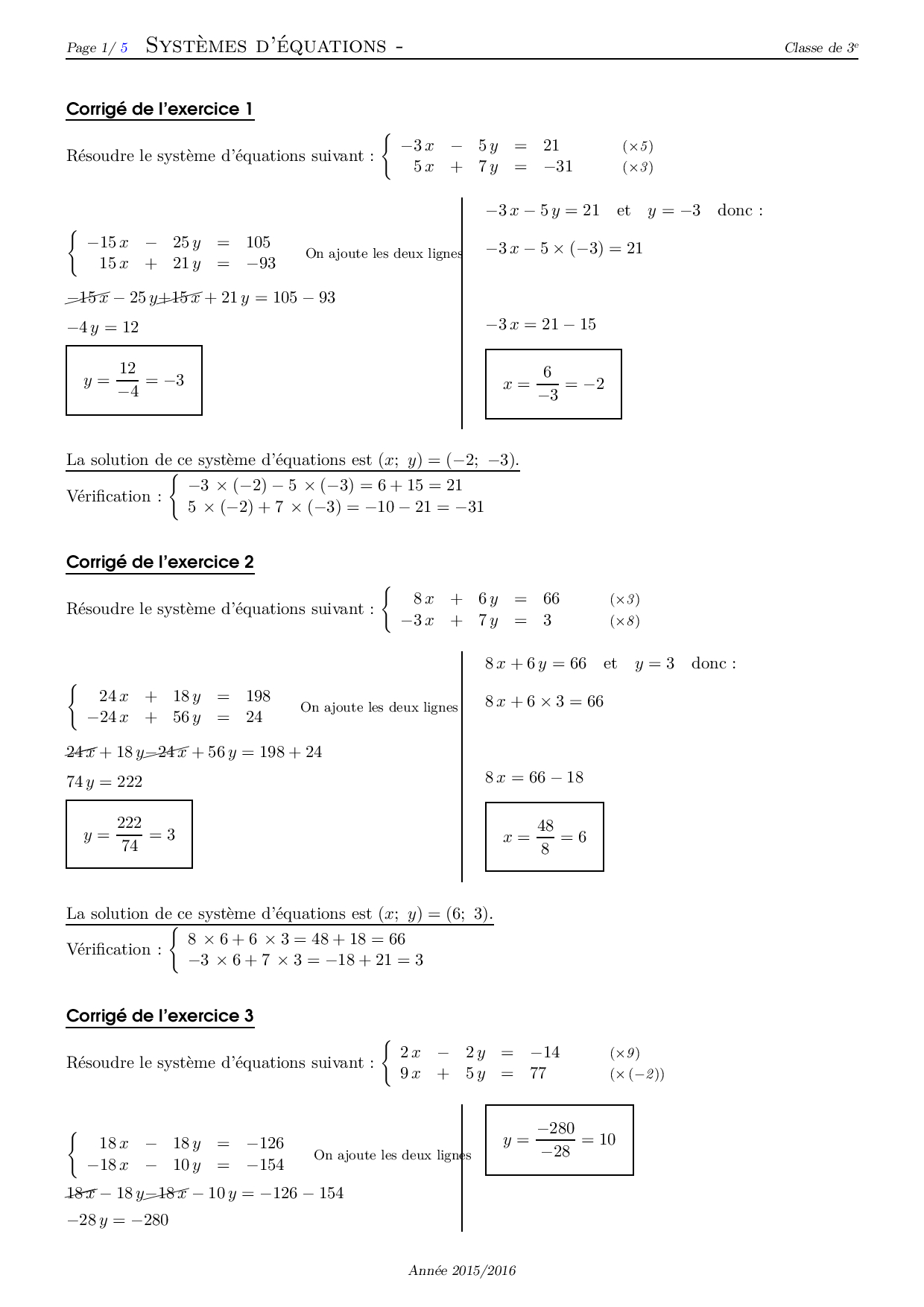 Résolution d'un système d'équations - Corrigé série d'exercices 3