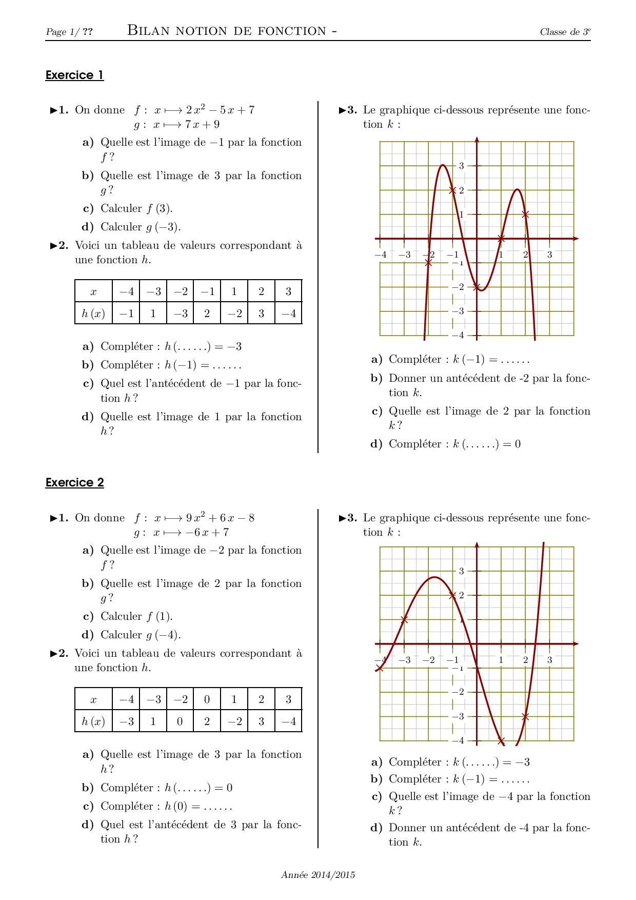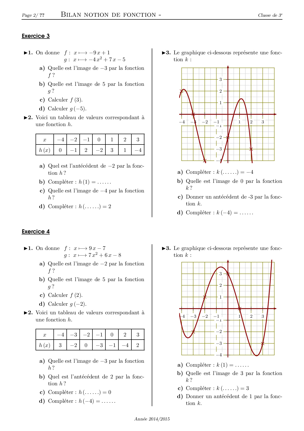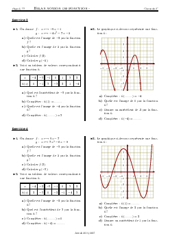 Notion de fonction (image, antécédent, lecture sur graphique) - Série d'exercices 2