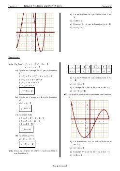 Notion de fonction (image, antécédent, lecture sur graphique) - Corrigé série d'exercices 3