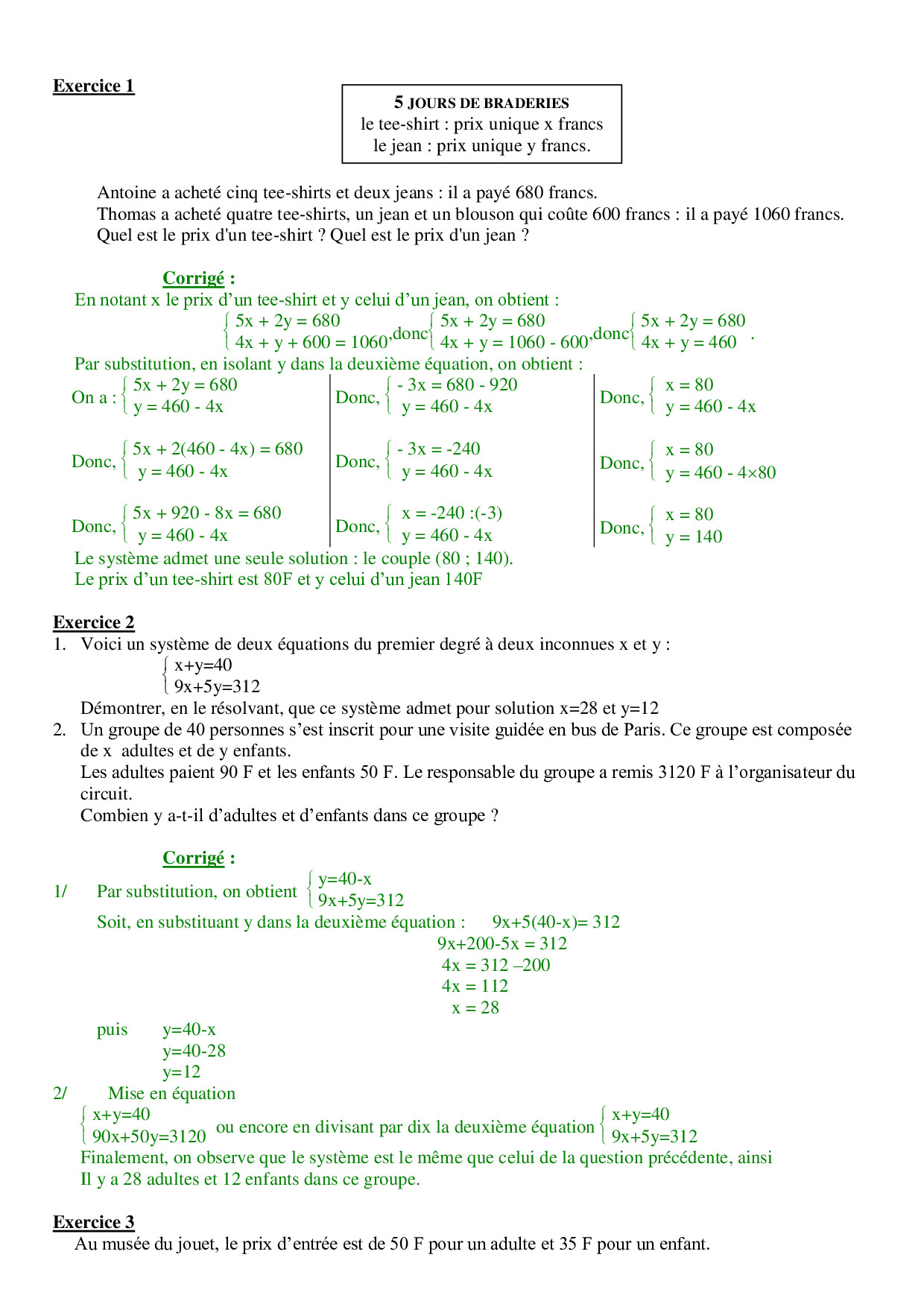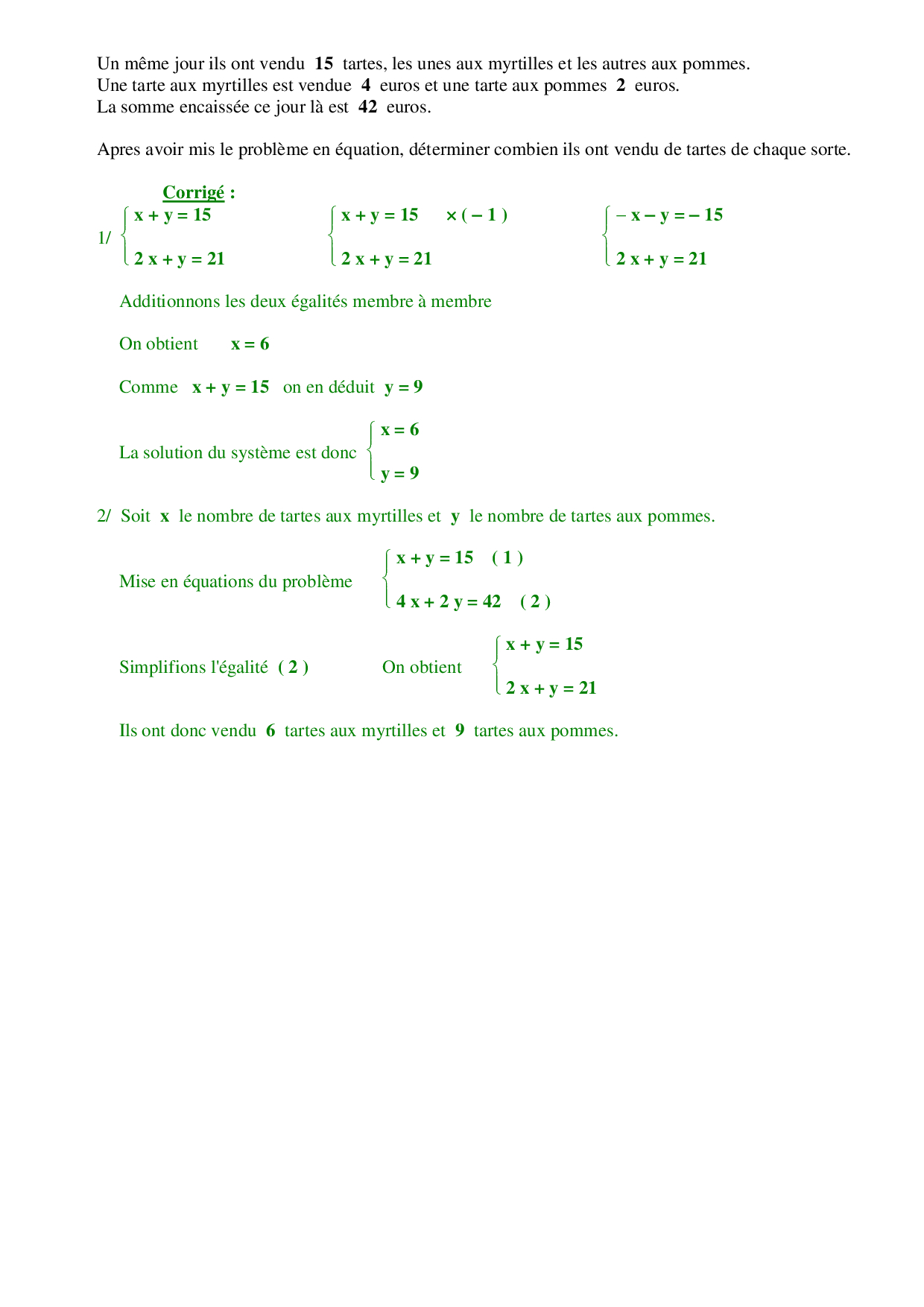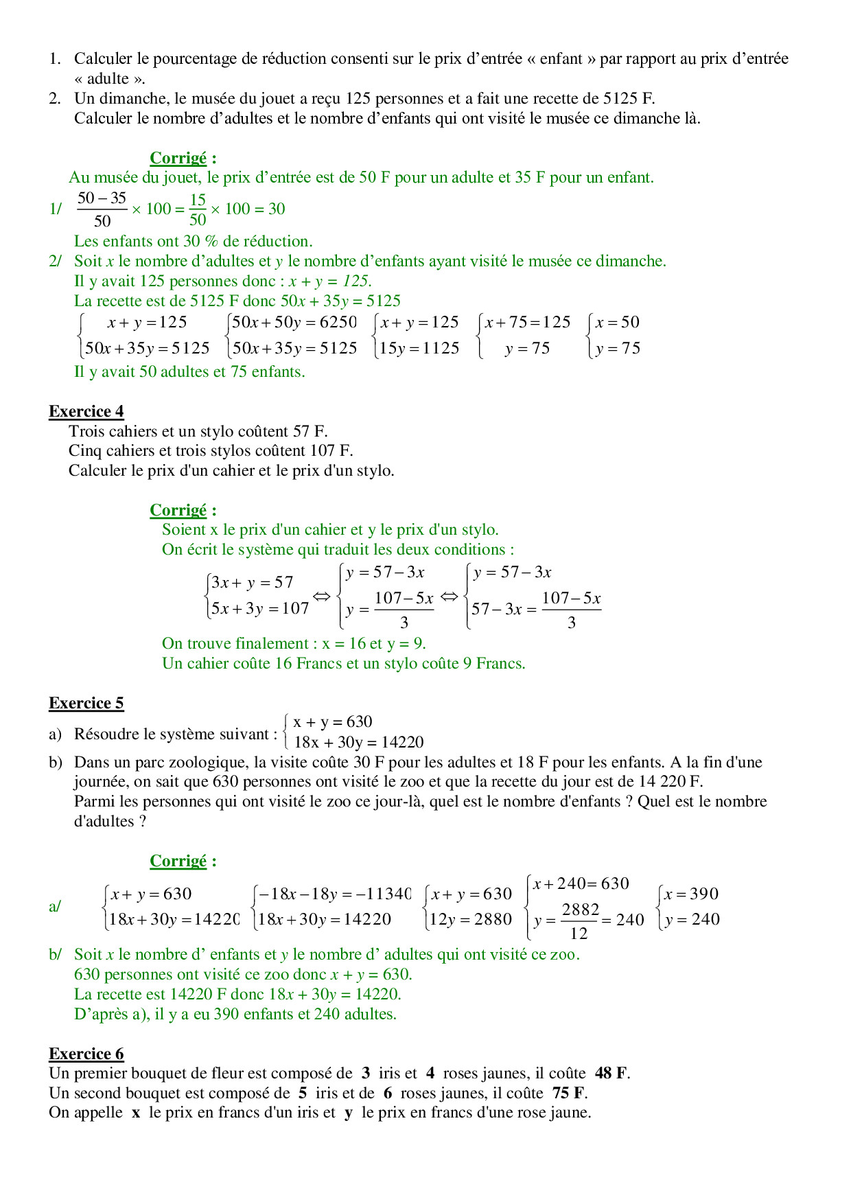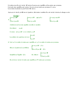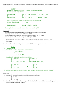 Systèmes d'équations - Problèmes corrigés