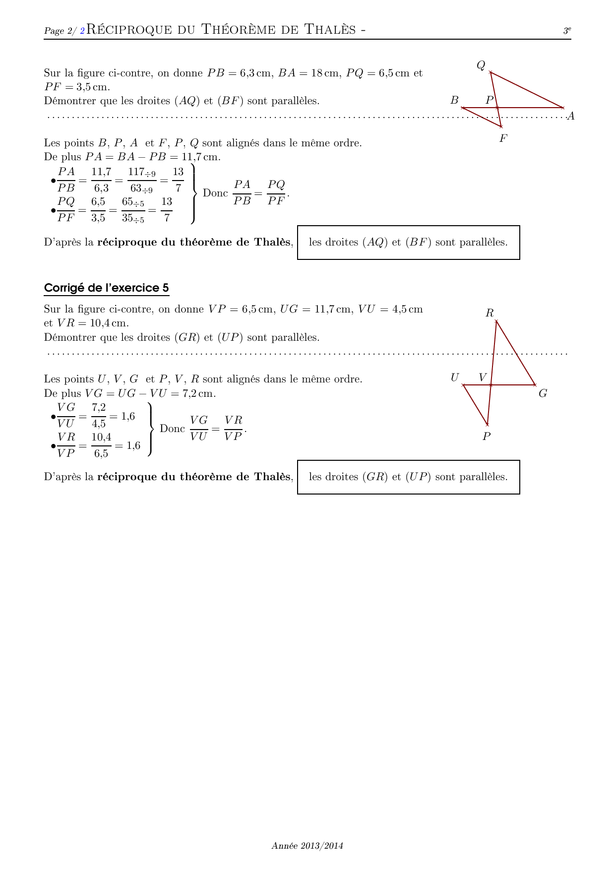 Réciproque du théorème de Thalès - Corrigé série d'exercices 1