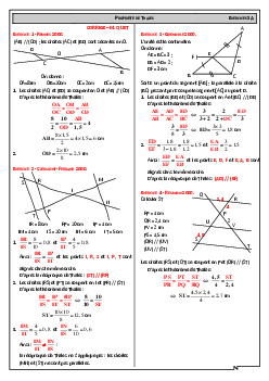Théorème de Thalès (Problèmes de BREVET) - Corrigés d'exercices