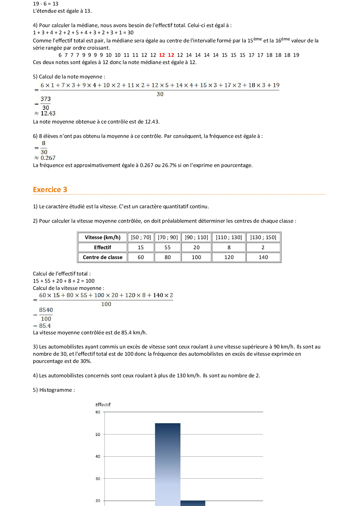 Statistiques - Corrigé d'exercices d'entraînement