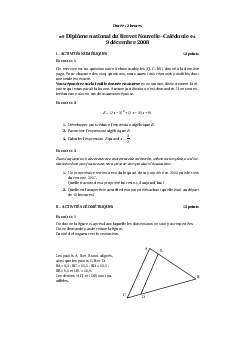 Brevet Maths Nouvelle-Calédonie décembre 2008 - Sujet