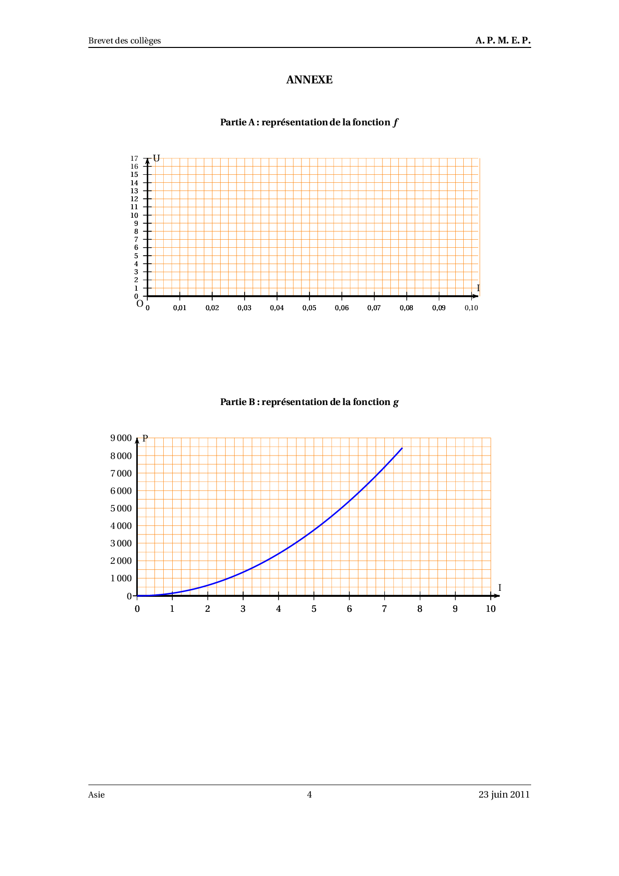 Brevet Maths Asie juin 2011 - Sujet