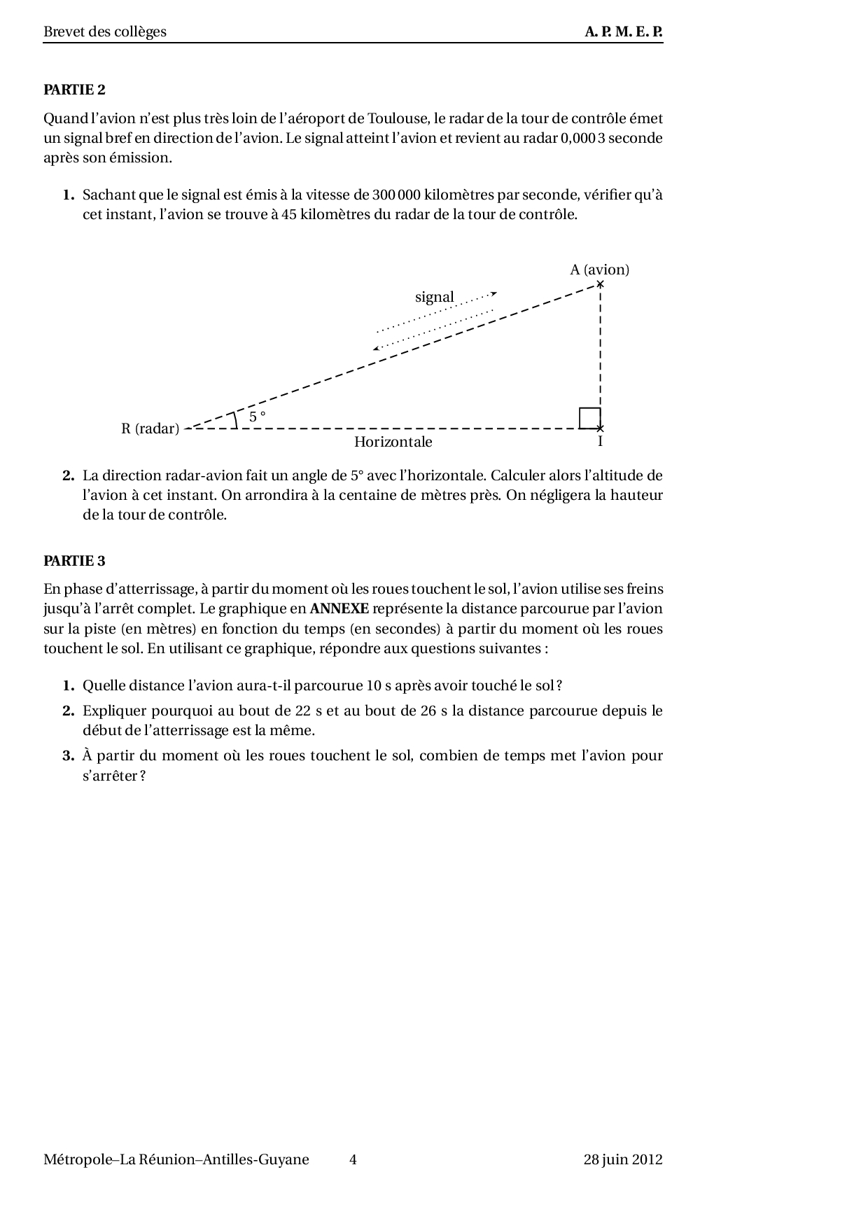Brevet Maths Métropole-La Réunion-Antilles-Guyane juin 2012 - Sujet