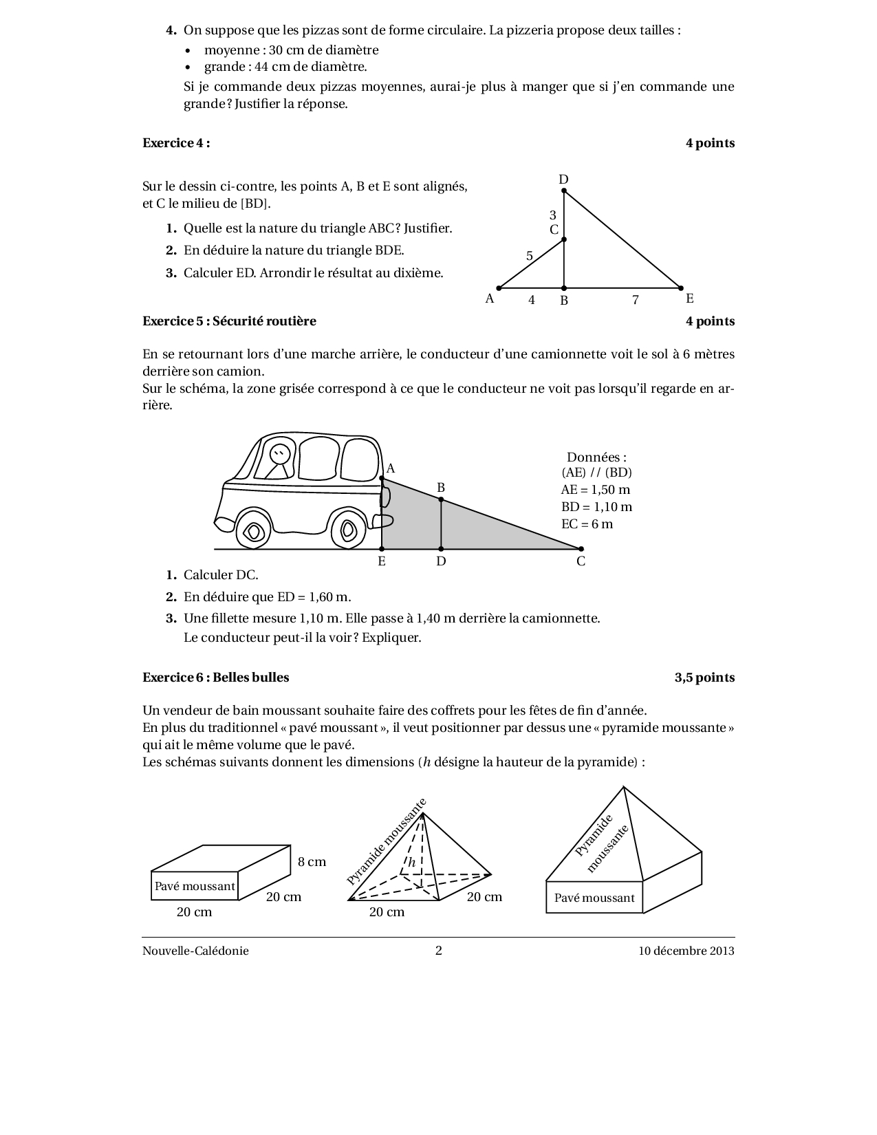 Brevet Maths Nouvelle-Calédonie décembre 2013 - Sujet