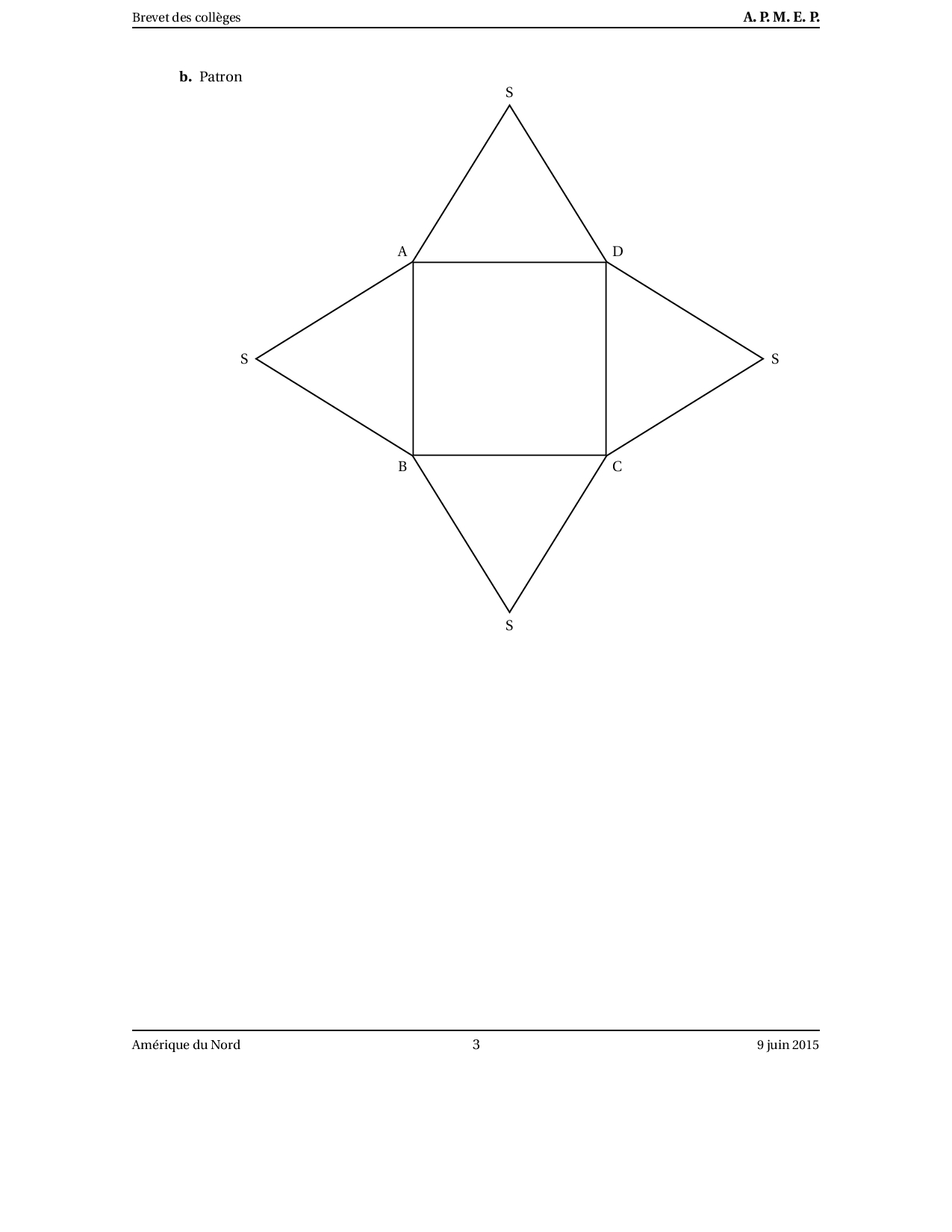 Brevet Maths Amérique du Nord juin 2015 - Corrigé