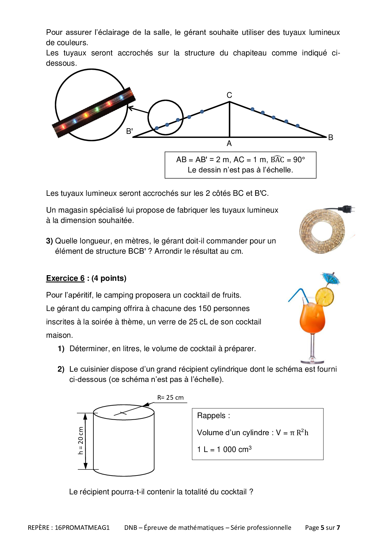Brevet Maths Métropole La Réunion Antilles Guyane juin 2016 (série professionnelle) - Sujet